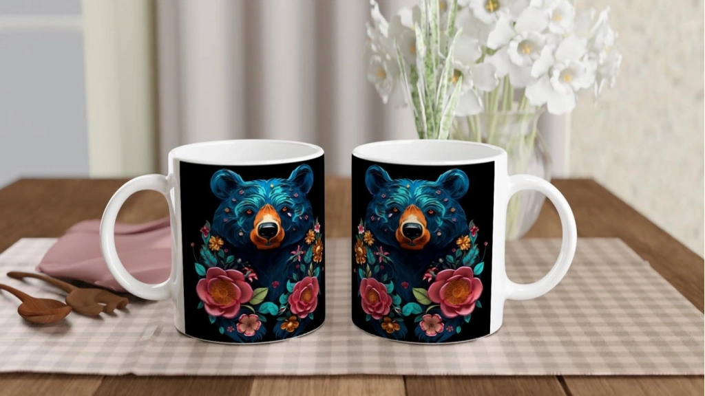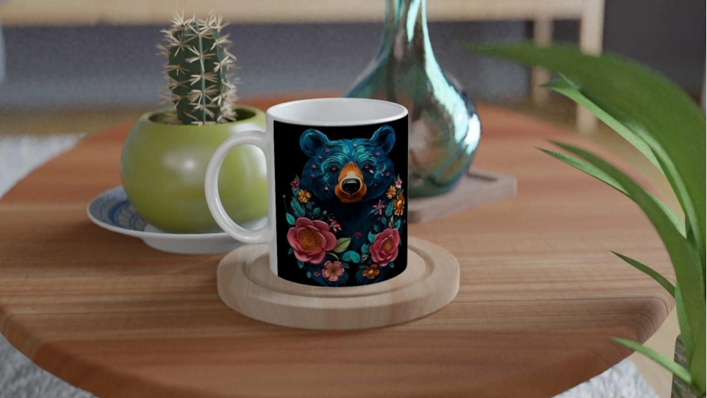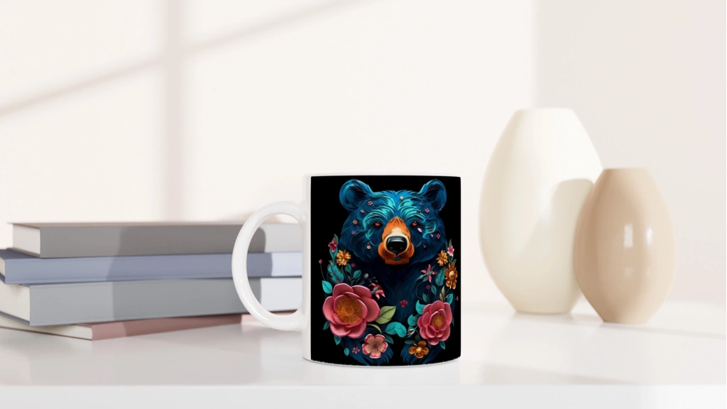 Güçlü ama zarif bir tasarımla sunulan çiçekli ayı kupa bardak, doğanın uyumunu kahvenize taşıyor.