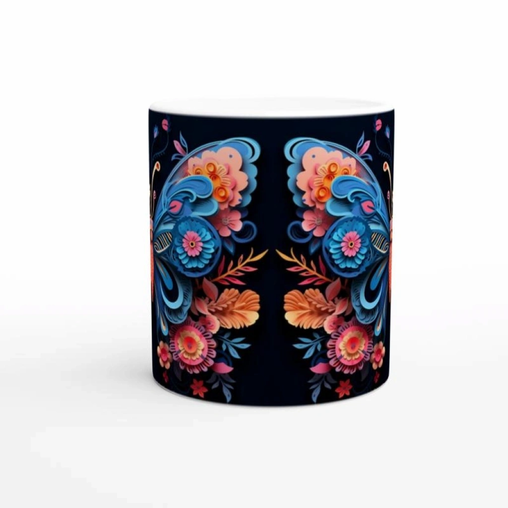 Çiçek Kanatlı Kelebek Baskılı Kupa Bardak, narin bir kelebeğin renkli çiçeklerle harmanlanmış kanatlarından ilham alıyor. Canlı mavi, mercan ve pembenin eşsiz uyumuyla hazırlanan bu tasarım, hem ruhu hem ortamı aydınlatıyor. Şıklığı ve doğa sevgisini bir araya getiren bu kupa, göz alıcı bir hediye seçeneği!