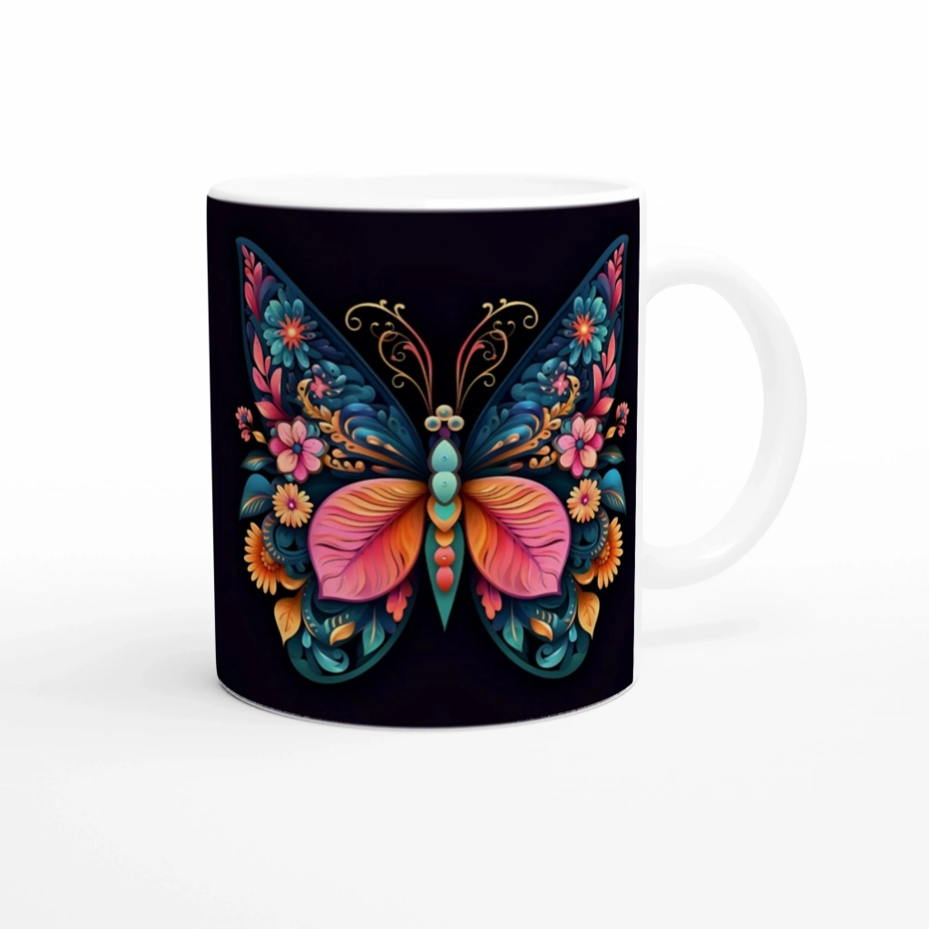 Renklerin dans ettiği bu kelebek desenli kupa bardak, doğanın zarafetini masanıza taşıyor.