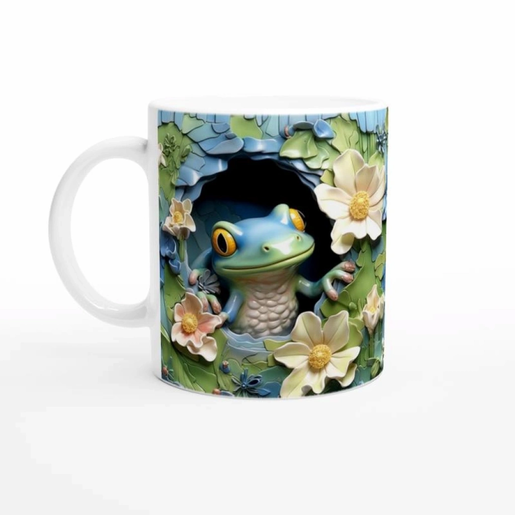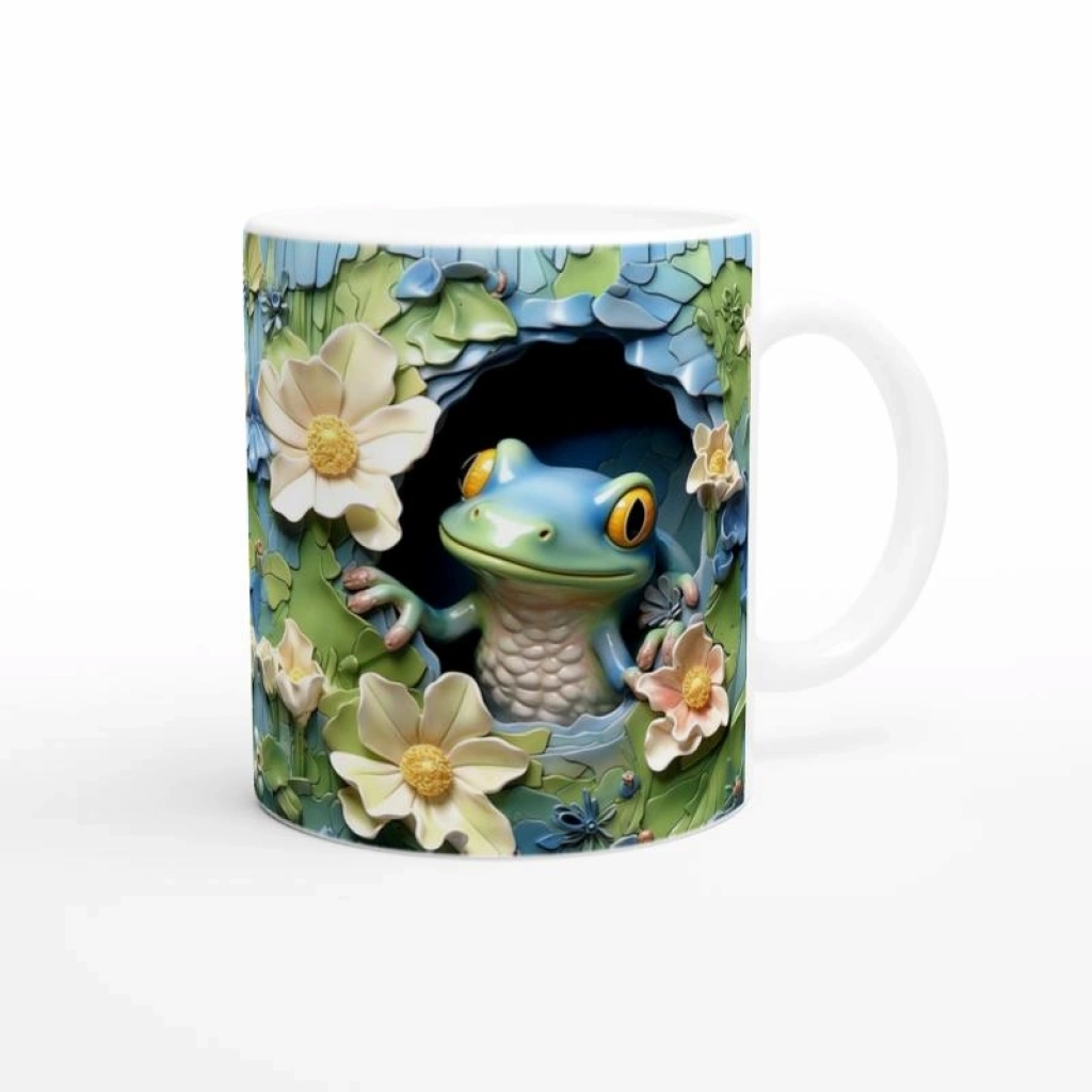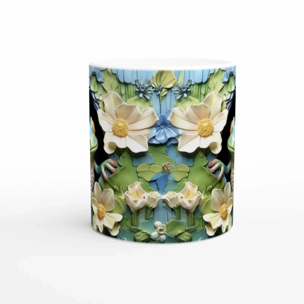 Çiçeklerin Arasında Beliren Kurbağa Temalı Baskılı Kupa Bardak