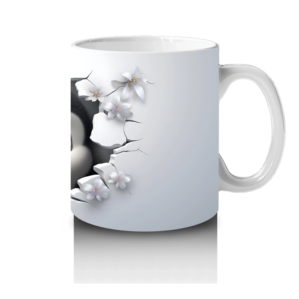 Çiçeklerle Süslenmiş Penguen Maskotu – Baskılı Kahve Kupası