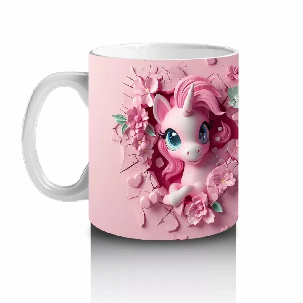 Çiçeklerle süslenmiş sevimli pembe midilli figürü, zarif ve tatlı bir atmosfer yaratıyor. Romantik ve neşeli tasarımlar arayanlar için özel bir kupa.