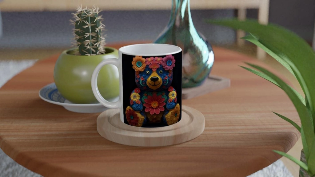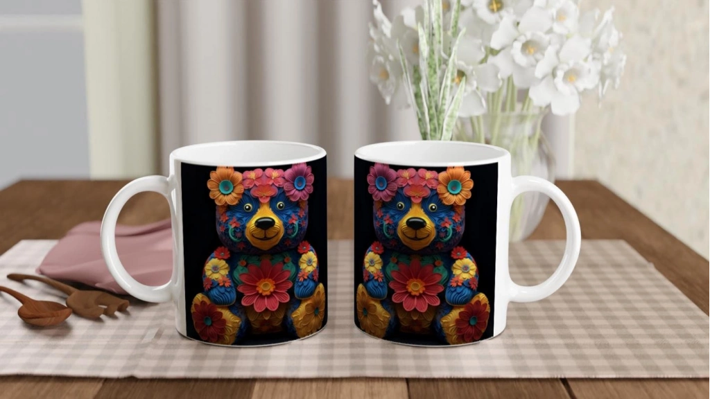 Çiçekli Ayıcık Baskılı Kupa Bardak