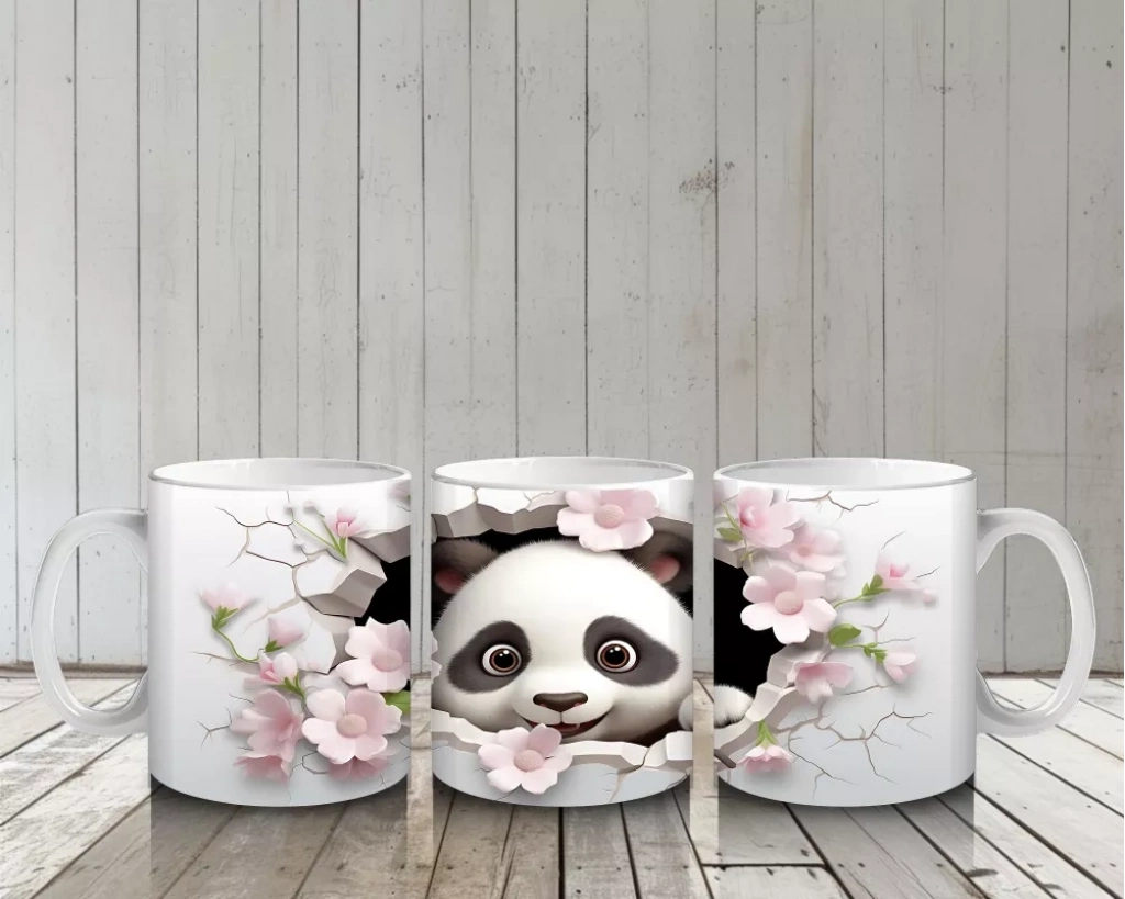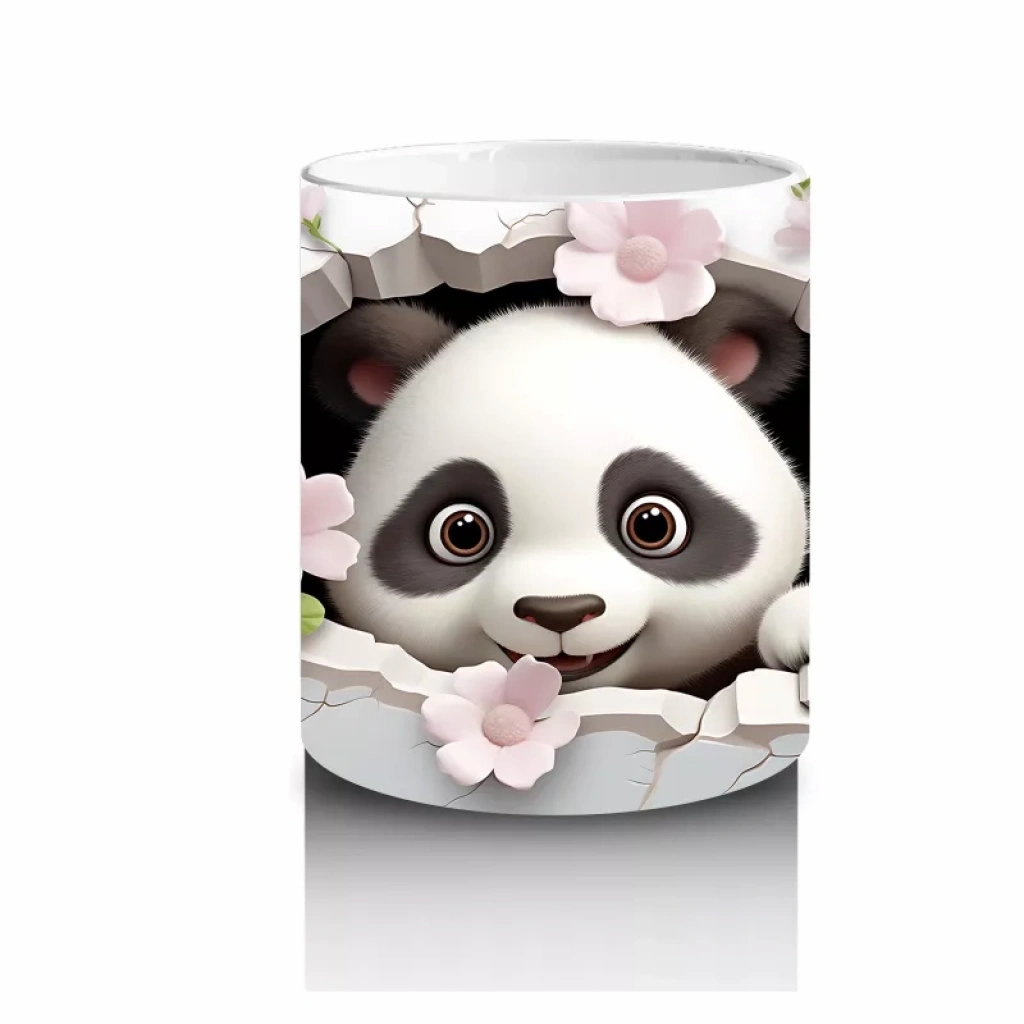 Renkli çiçeklerle süslenmiş çatlakta keyifle oturan bu neşeli panda, her anınıza pozitif enerji katıyor. Hem çocuklara hem yetişkinlere hitap eden sıcak ve eğlenceli bir kupa modeli.