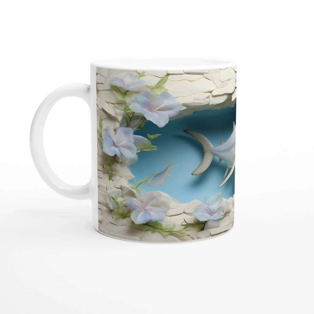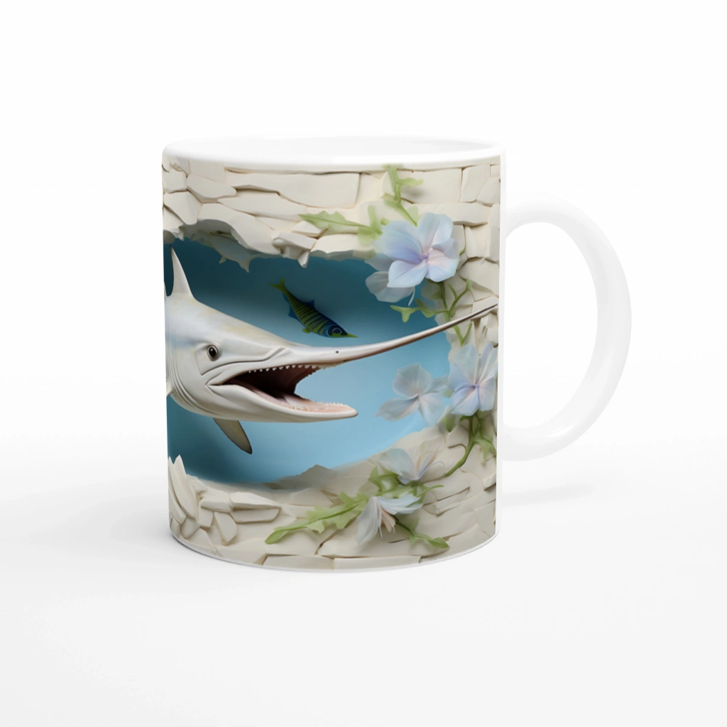 Çiçekli Duvar Arasından Fırlayan Kılıçbalığı Su Altı Temalı Kupa Bardak