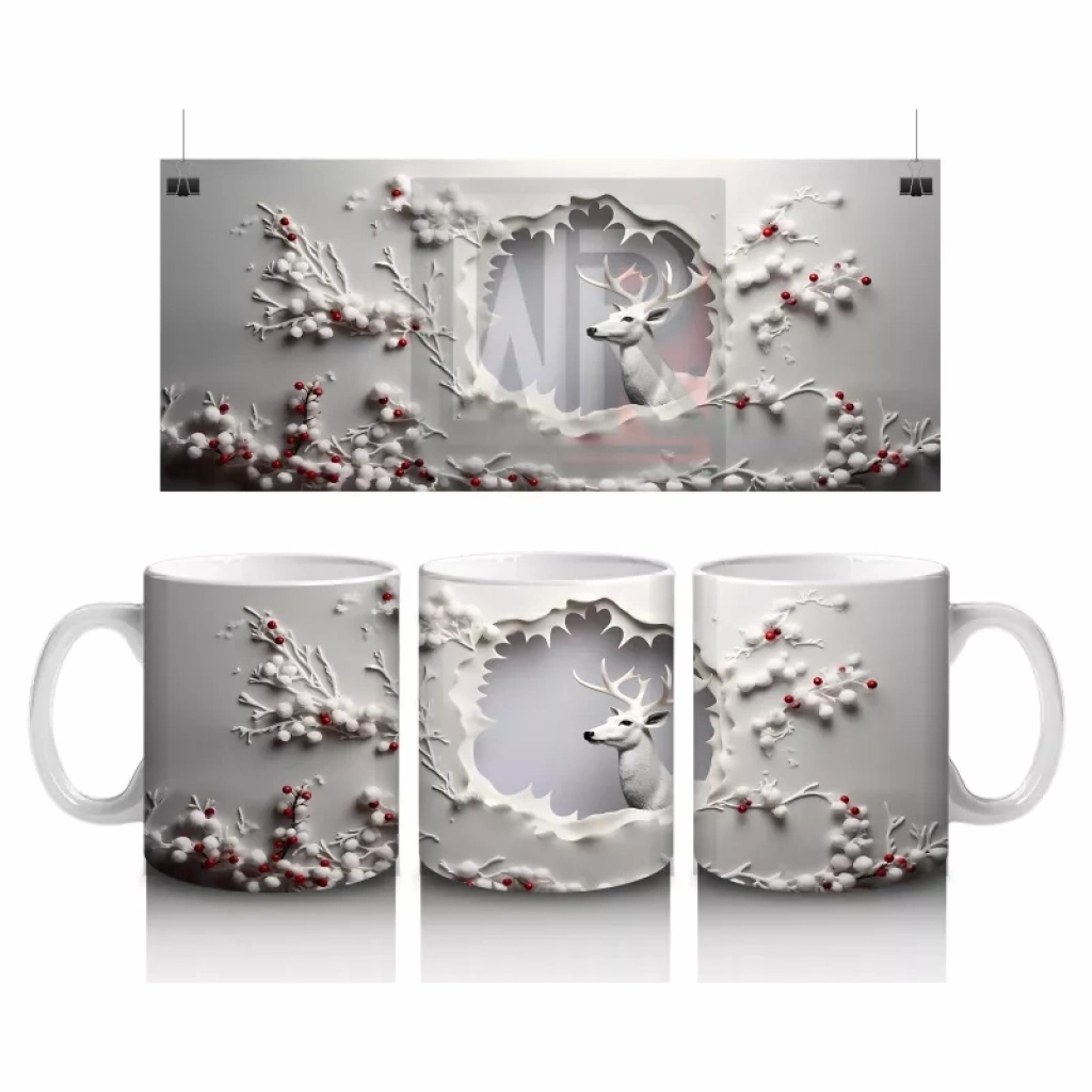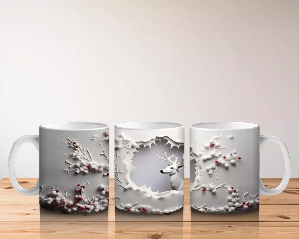 Çiçekli Duvar Desenli Minik Geyik – Baskılı Kahve Kupası