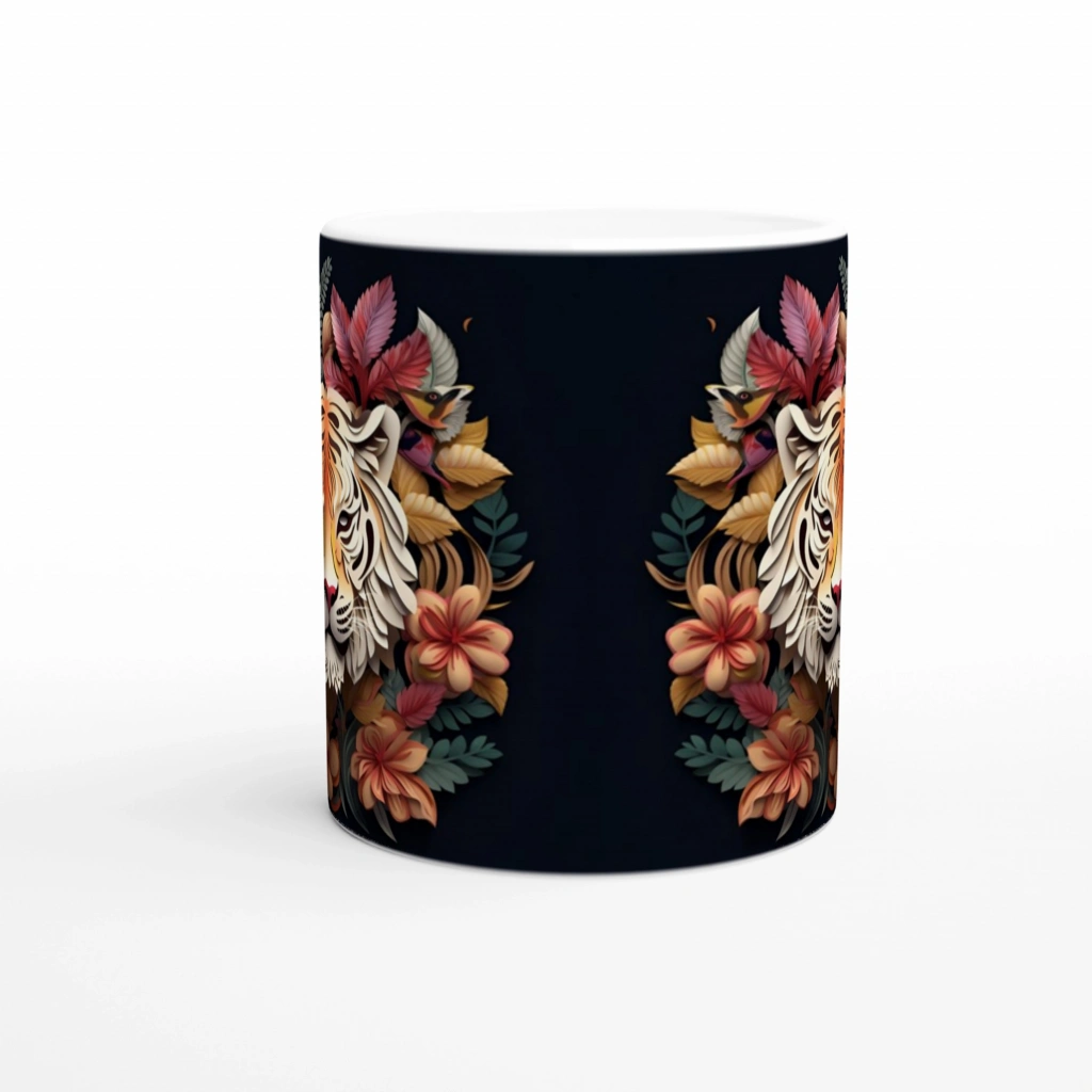 Çiçekli Kaplan Tasarımlı Sanatsal Kupa Bardak