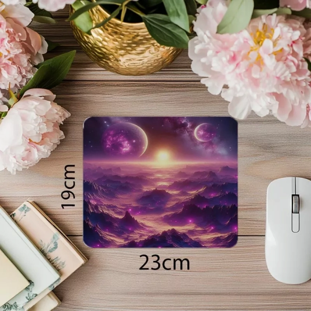 Çift Güneşli Uzay Manzaralı Mousepad - 19x23 cm 2 mm Dikdörtgen İthal Baskılı Mouse Pad