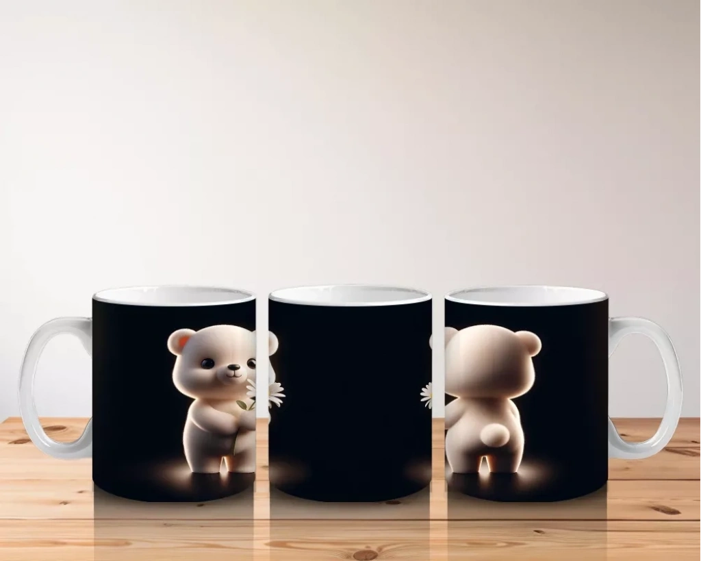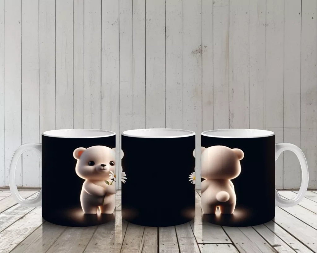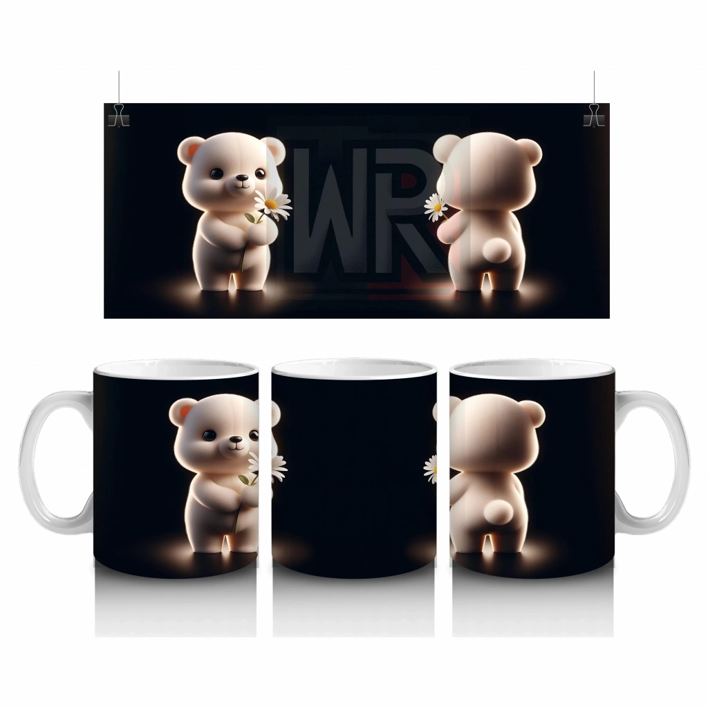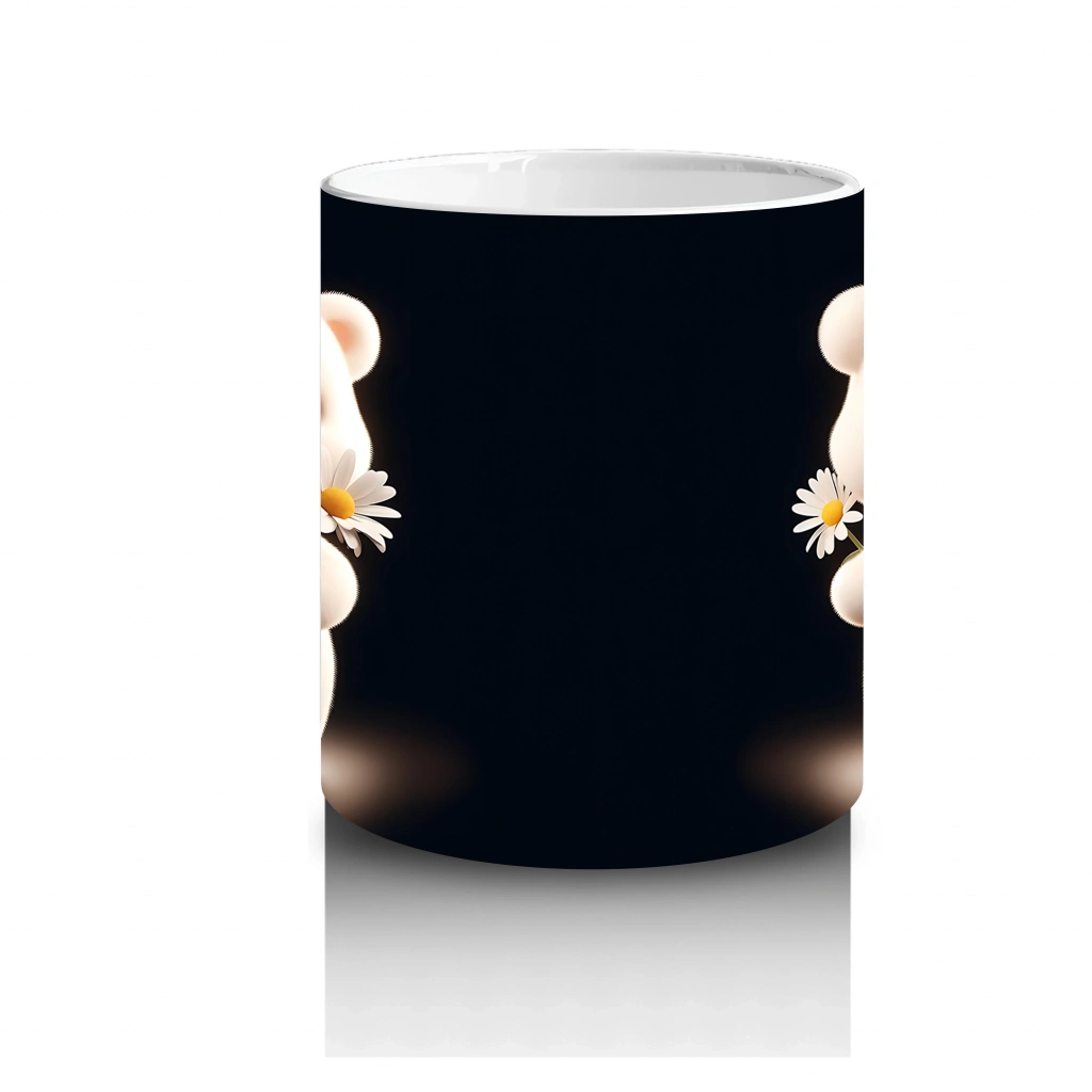 Çift Taraflı Papatyalı Minik Ayıcık Figürü – Baskılı Kahve Kupası