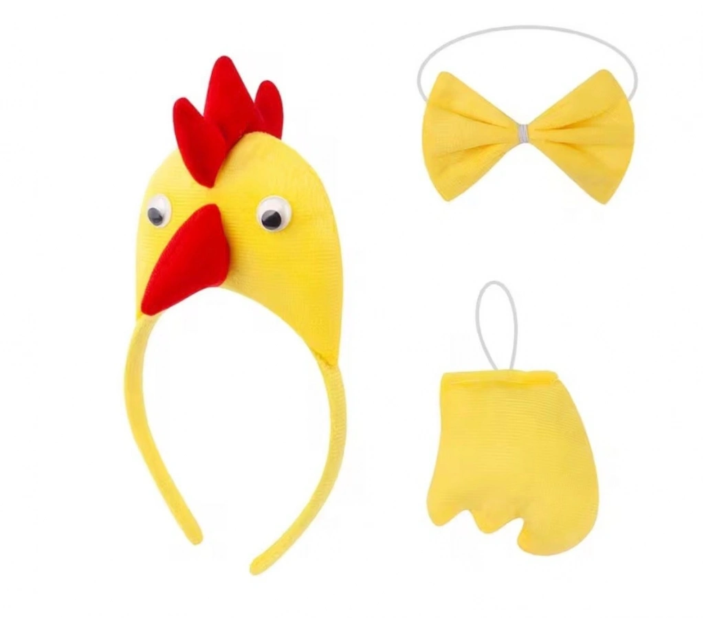 Çocuk Horoz Kostüm Seti 3 Parça (Taç + Papyon + Kuyruk)