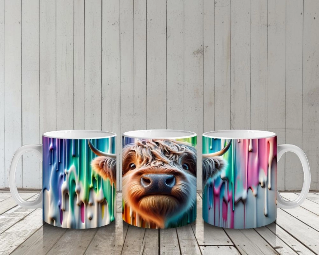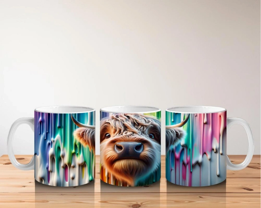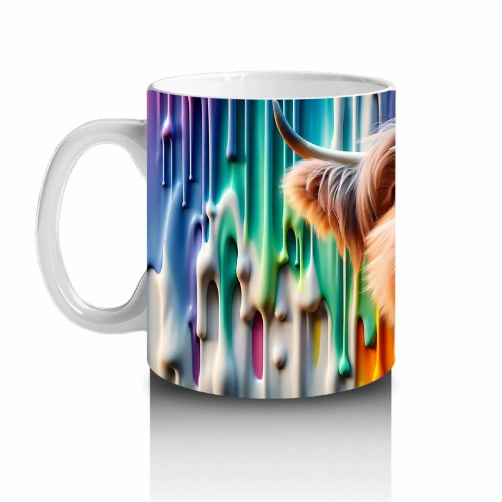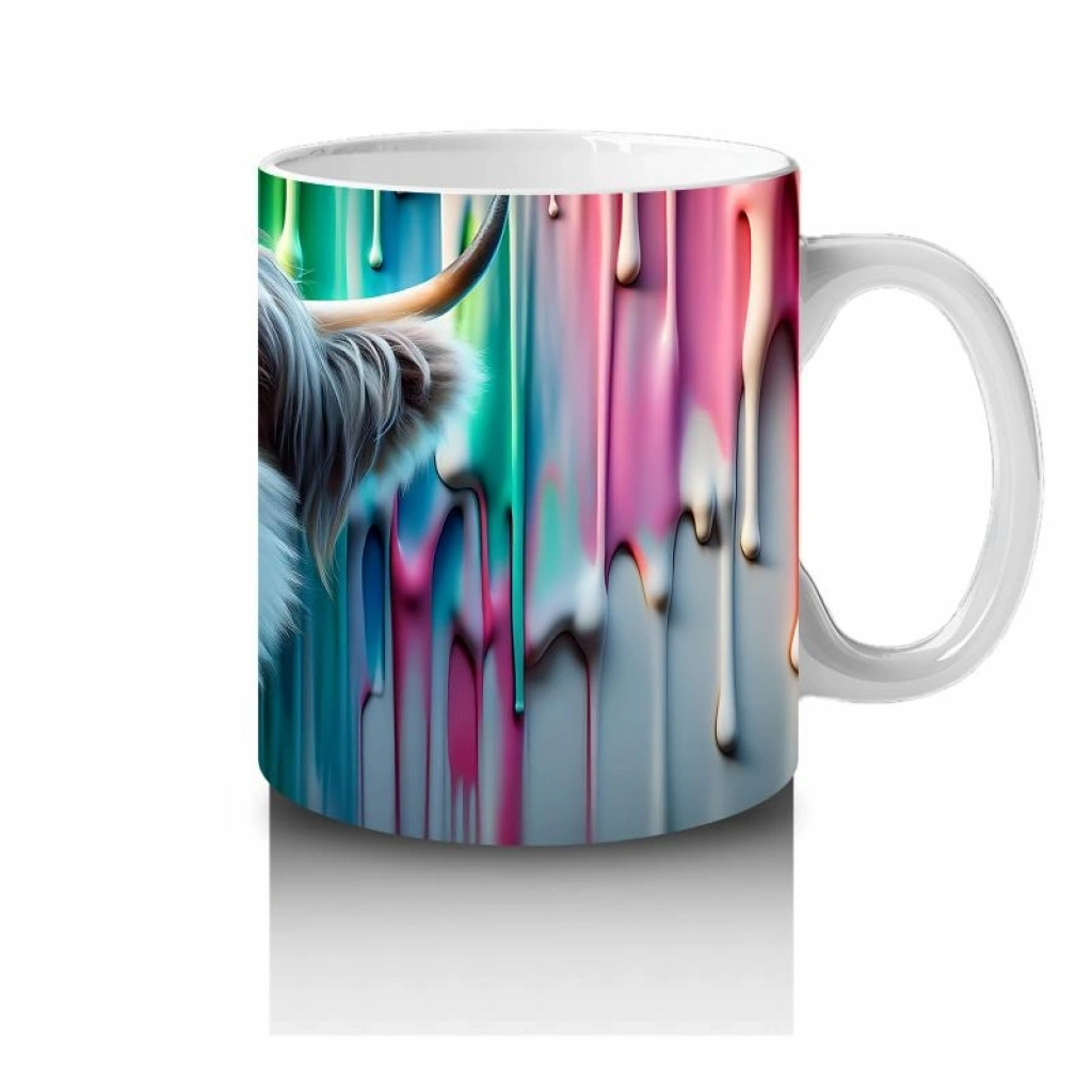 Çocuklara Sütü Sevdiren Boya Şelaleli Highland İneği Kupa Bardak
