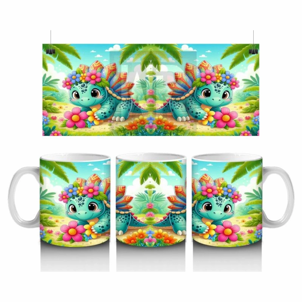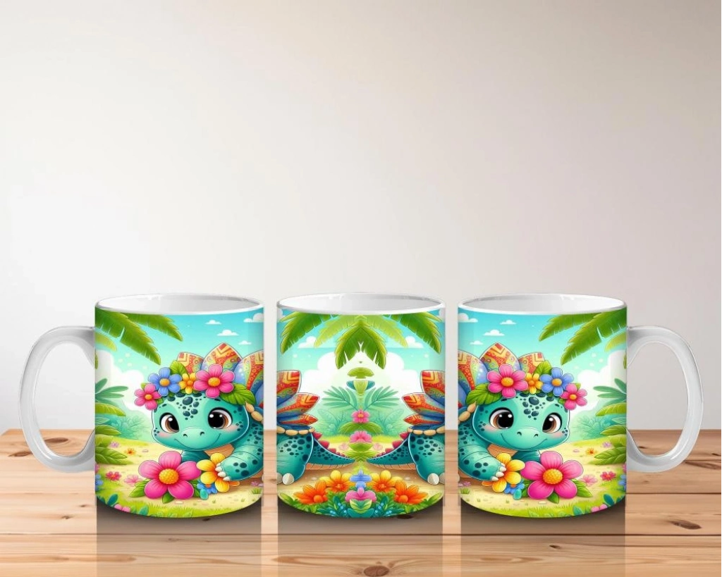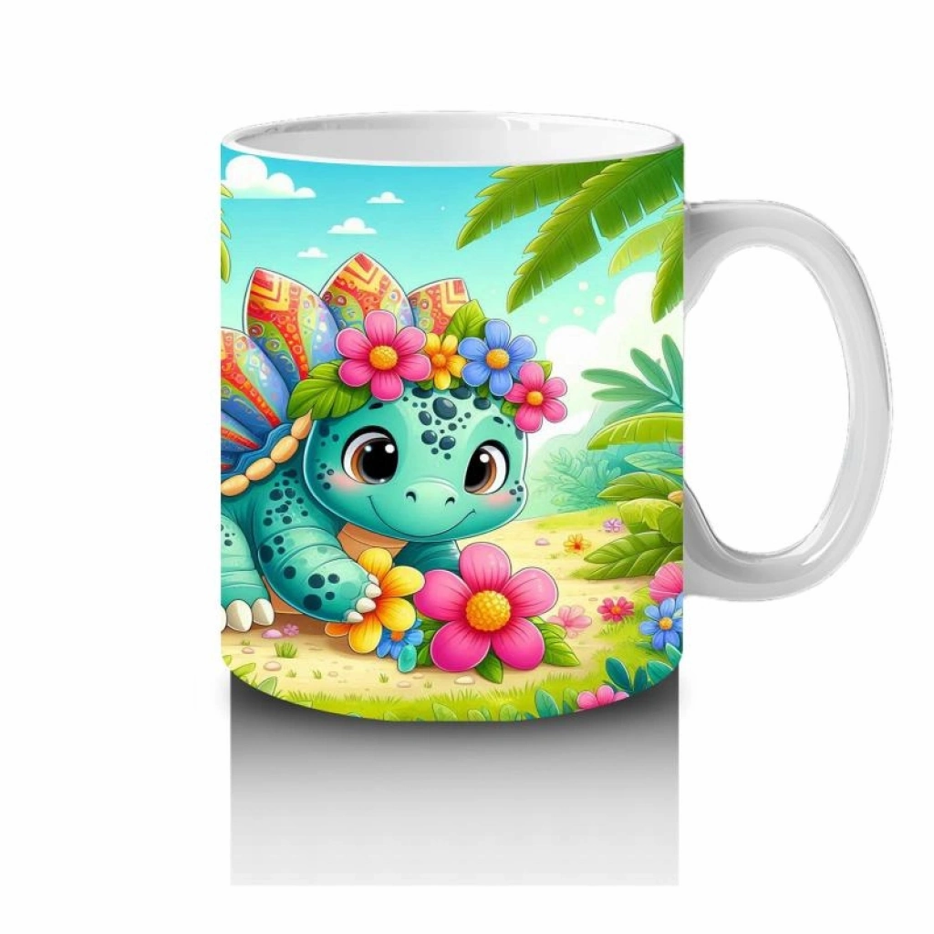 Çocuklara Sütü Sevdiren Çiçek Taçlı Sevimli Dinozor Desenli Kupa Bardak