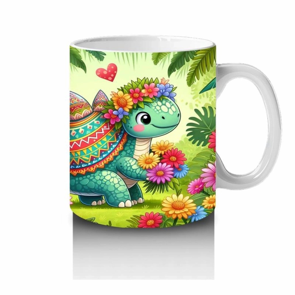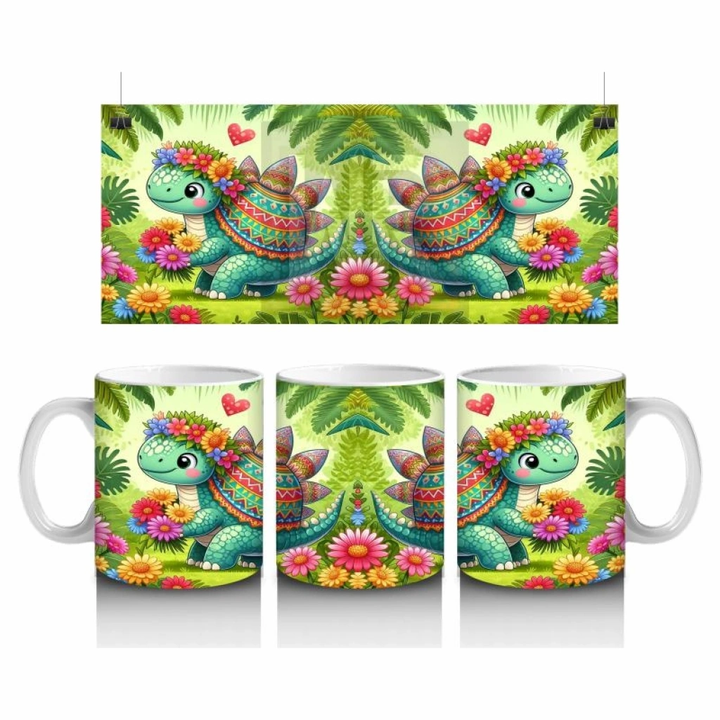 Çocuklara Sütü Sevdiren Çiçekli Kalpli Sevimli Dinozor Desenli Kupa Bardak