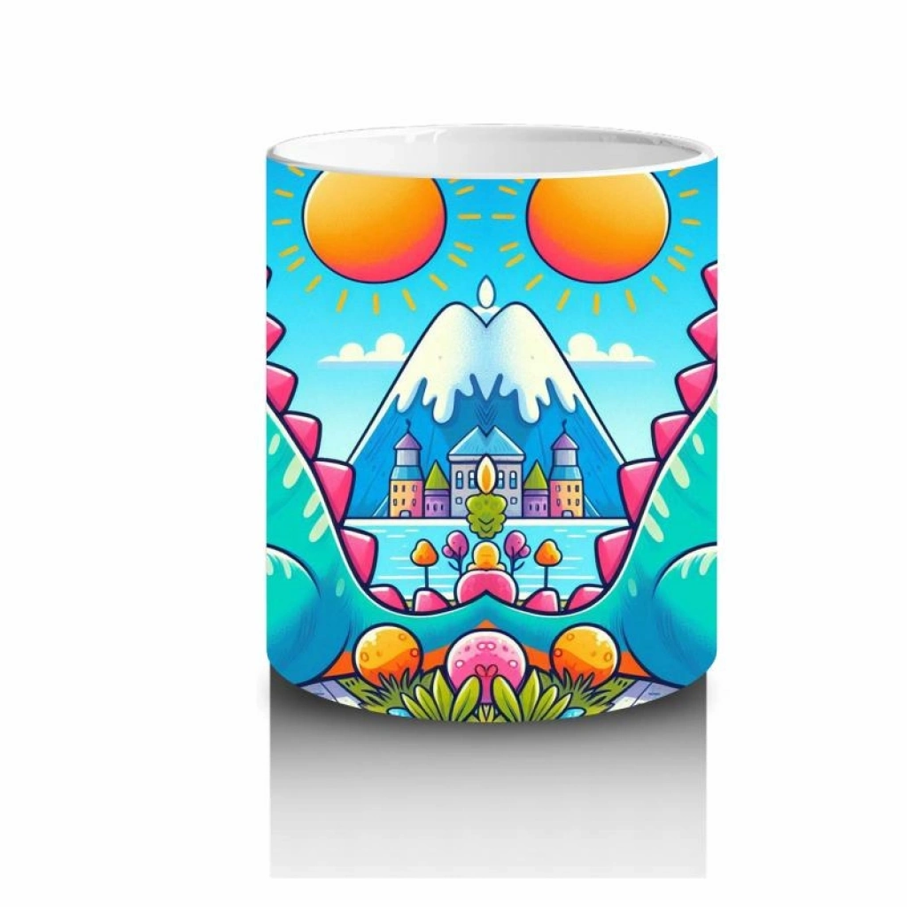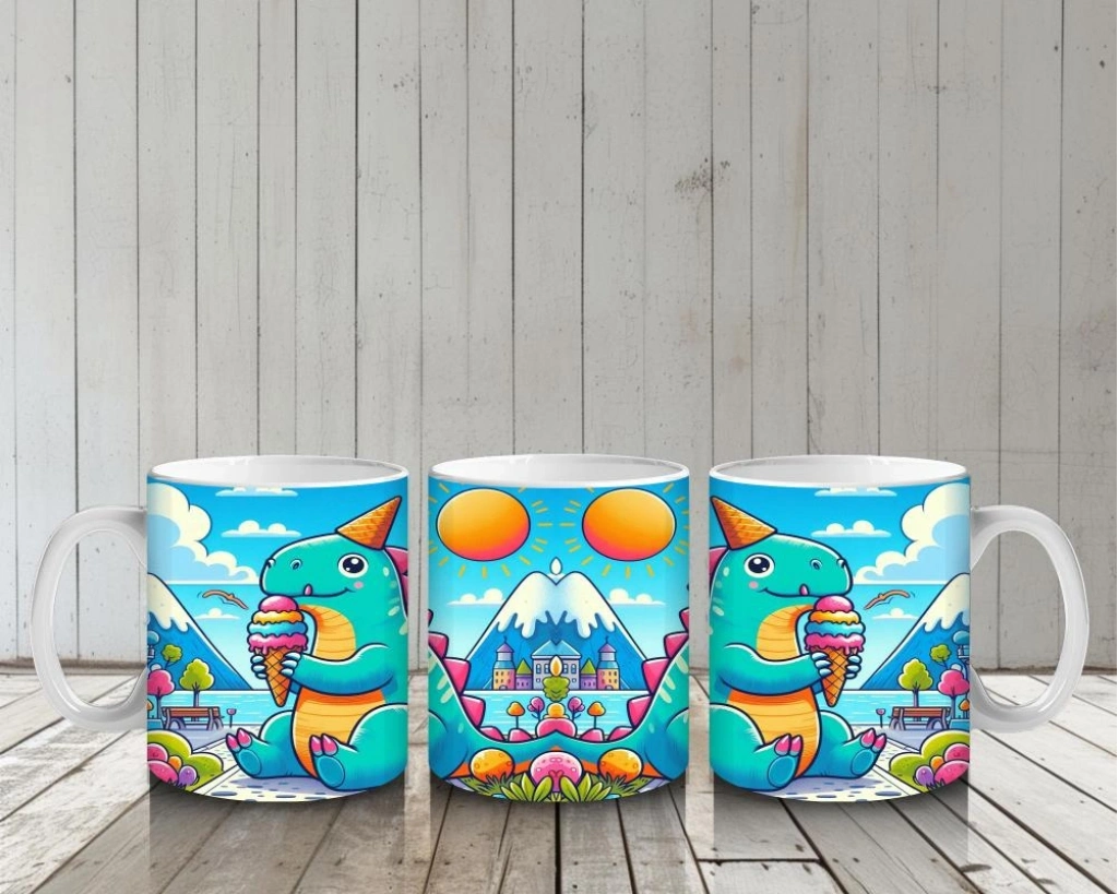 Parti havasında dondurmasını keyifle yiyen neşeli dinozor, miniklerin süt saatine tatlı ve eğlenceli bir dokunuş katıyor.