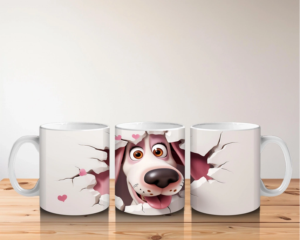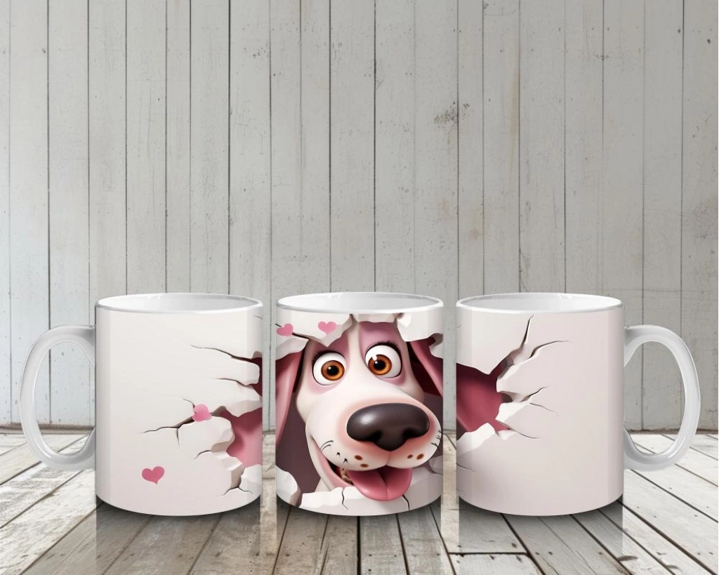 Çocuklara Sütü Sevdiren Duvarı Delip Gelen Heyecanlı Köpek Kupa Bardak