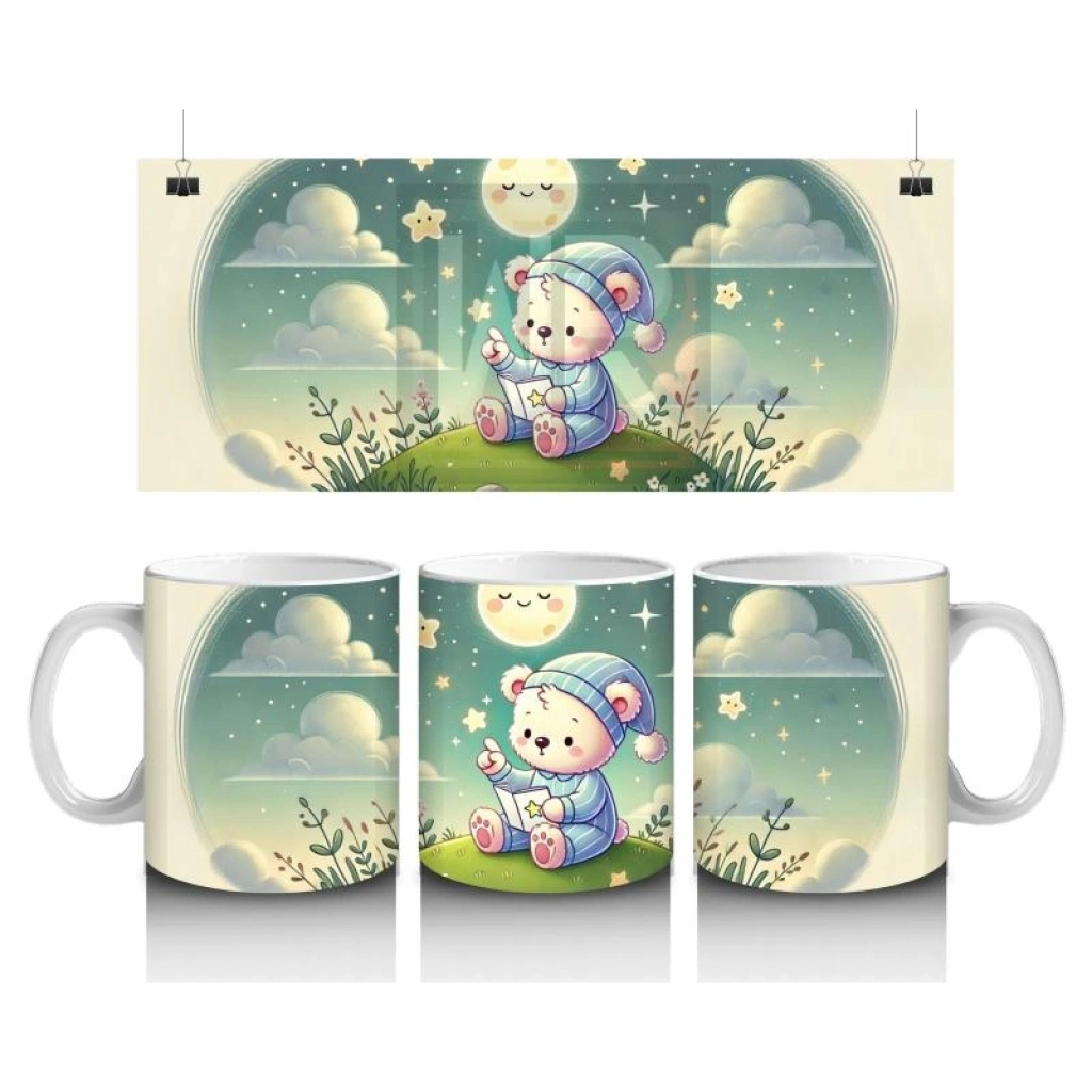 Çocuklara Sütü Sevdiren Gece Masalı Okuyan Sevimli Ayıcık Desenli Kupa Bardak