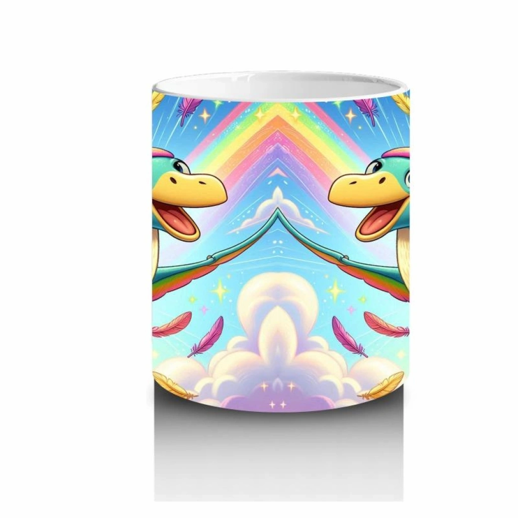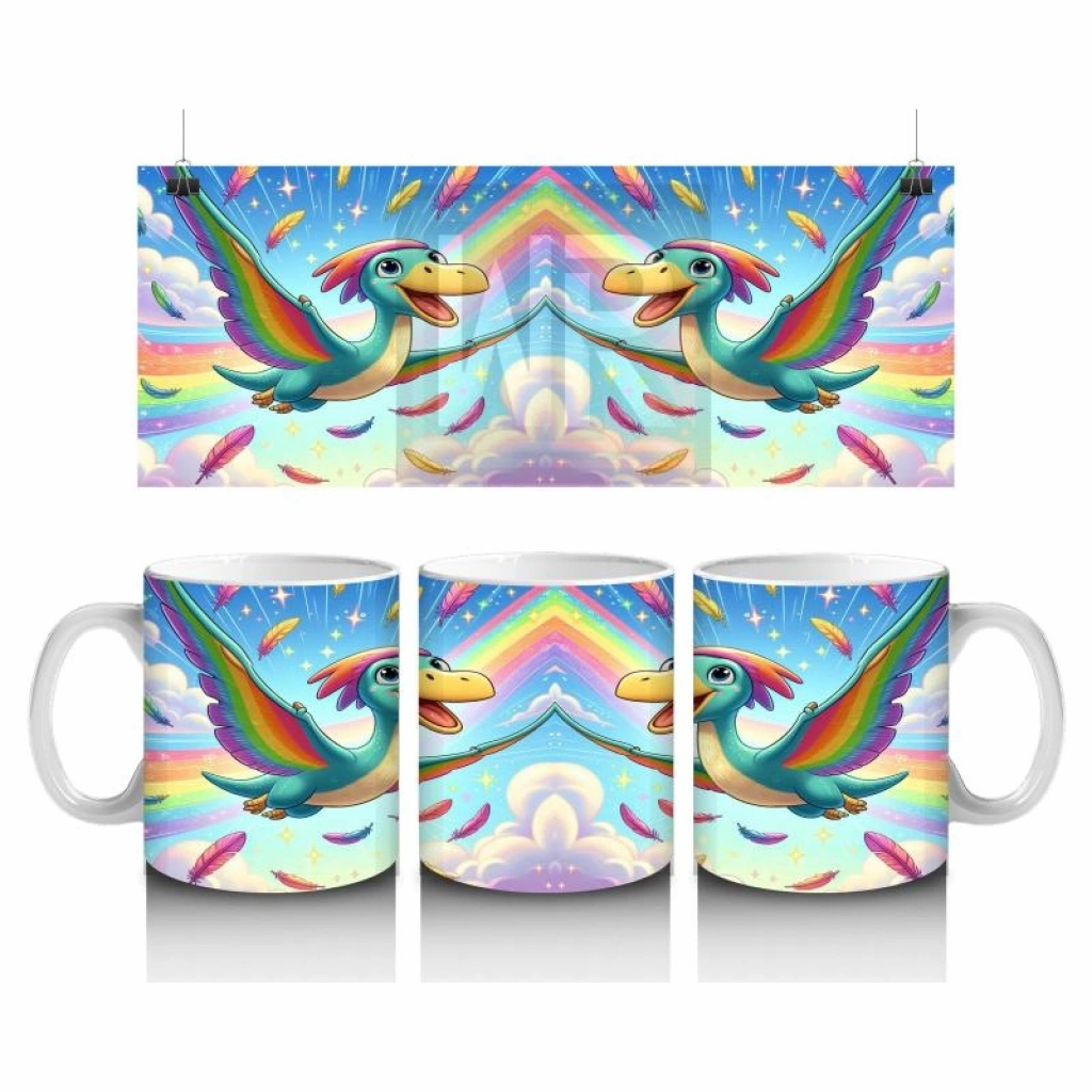 Çocuklara Sütü Sevdiren Gökkuşağı Kanatlı Dino Kuş Kupa Bardak