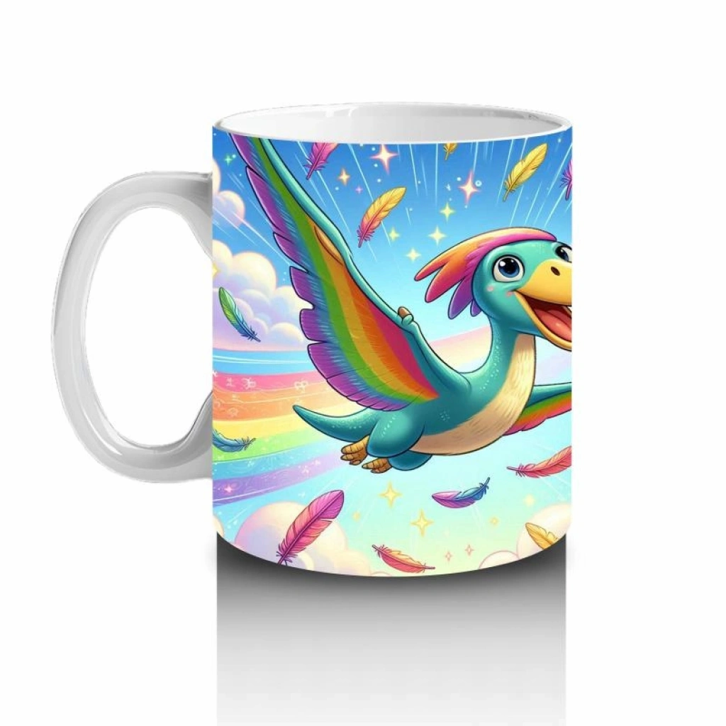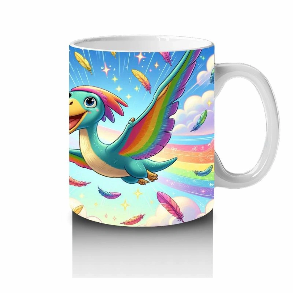 Gökkuşağı kanatlarıyla gökyüzünde süzülen bu dino kuş, çocukların süt molasını macera dolu bir uçuşa çeviriyor.