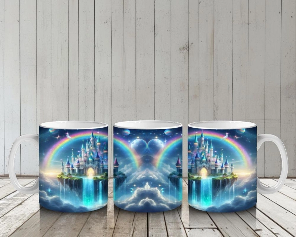 Çocuklara Sütü Sevdiren Gökkuşağı ve Büyülü Şato Desenli Kupa Bardak