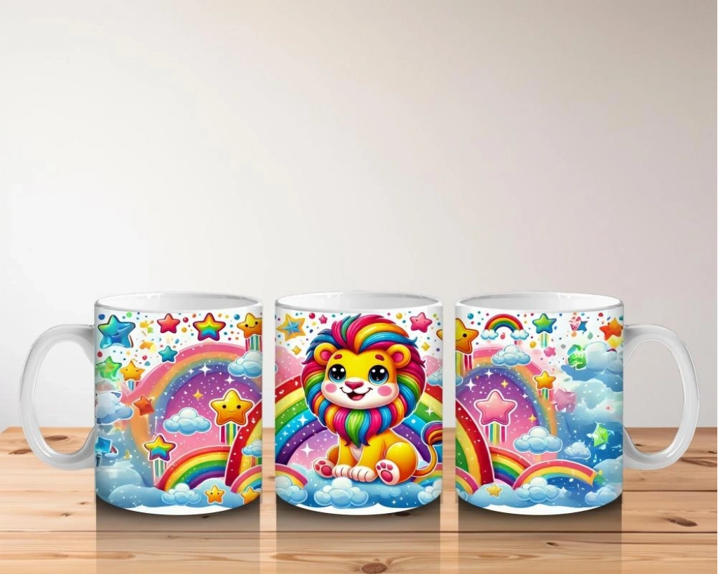 Çocuklara Sütü Sevdiren Gökkuşağı Yelesiyle Sevimli Aslan Desenli Kupa Bardak