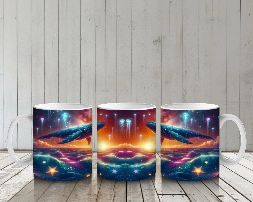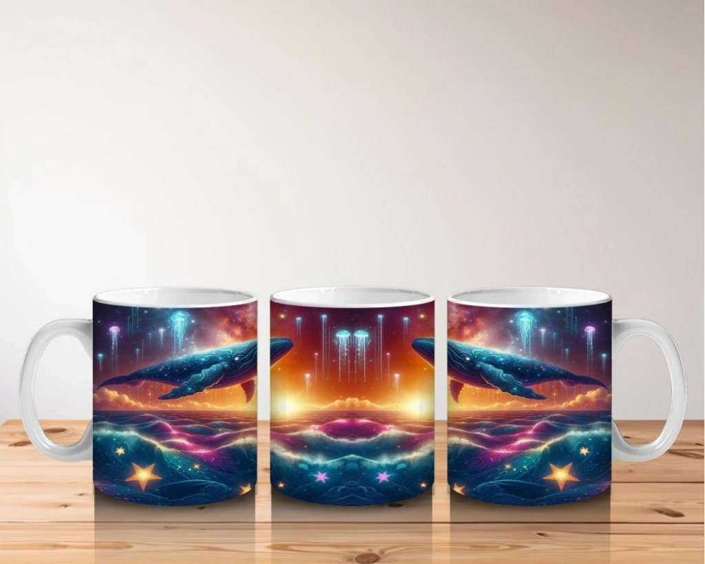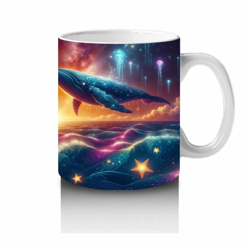 Işıklarla dans eden dev bir kozmik balina… Bu büyülü tasarımla her süt molası, yıldızlı bir okyanus masalına dönüşüyor.