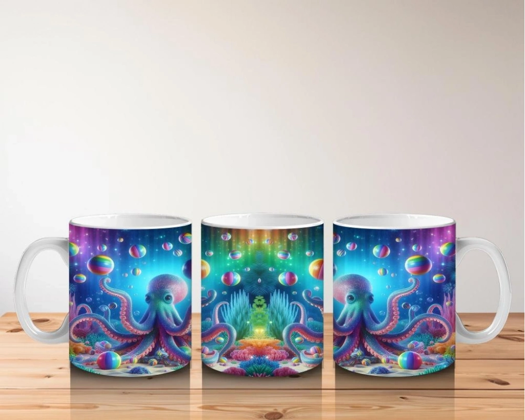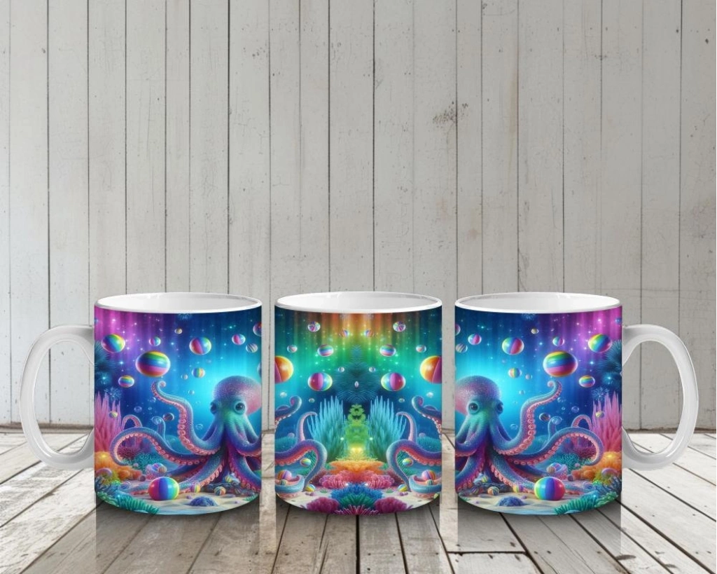 Çocuklara Sütdiren Işıltılı Ahtapot Karnavalı Kupa Bardak