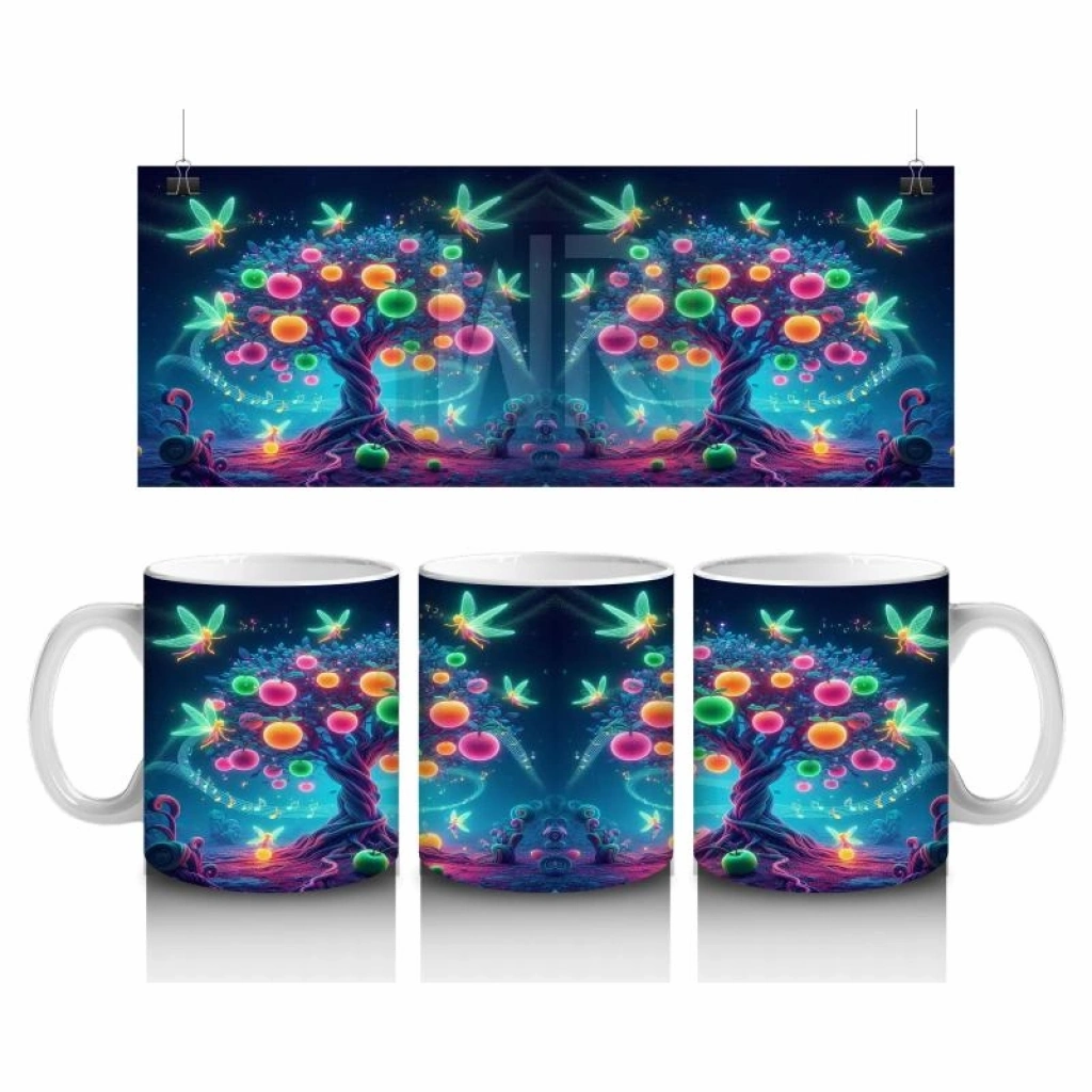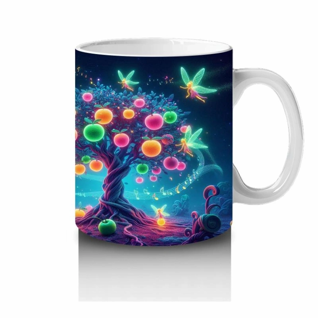 Çocuklara Sütü Sevdiren Işıltılı Peri Kuşları ve Masal Ağacı Desenli Kupa Bardak