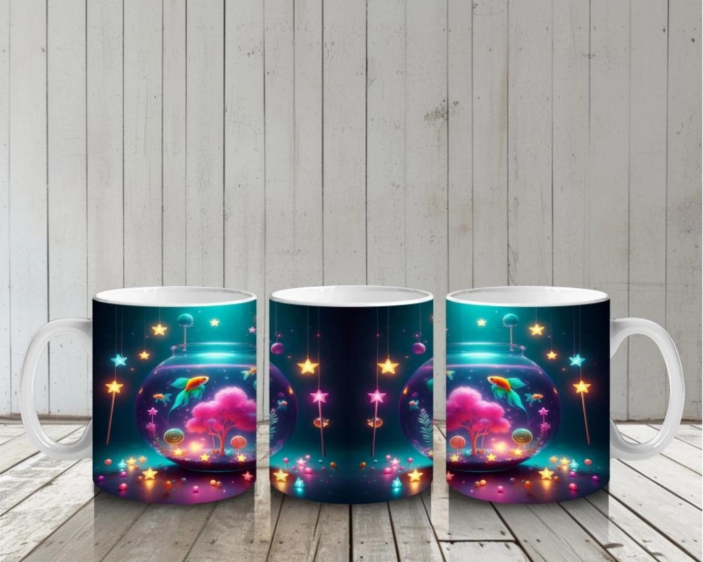 Çocuklara Sütü Sevdiren Işıltılı Renkli Balık Akvaryumu Desenli Kupa Bardak