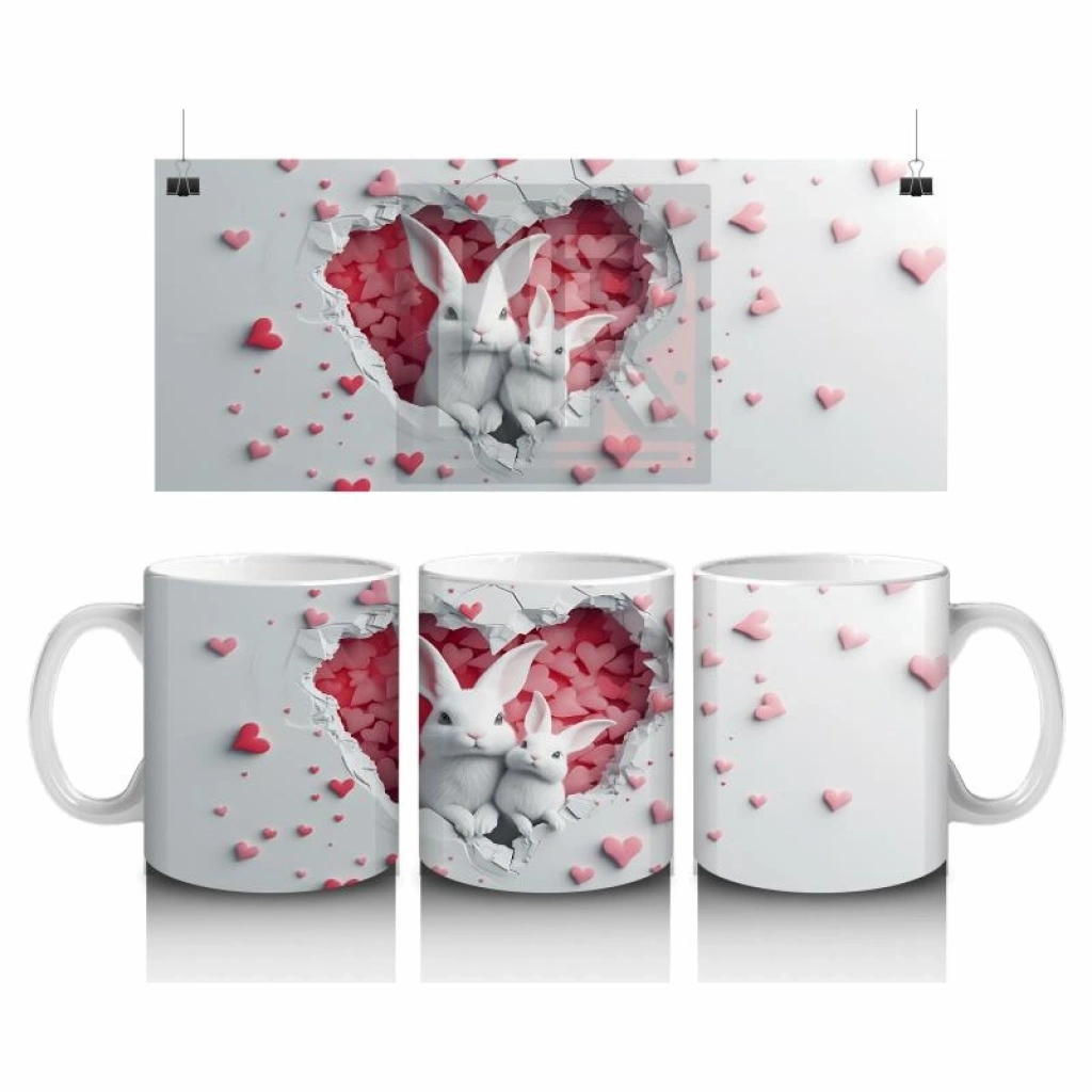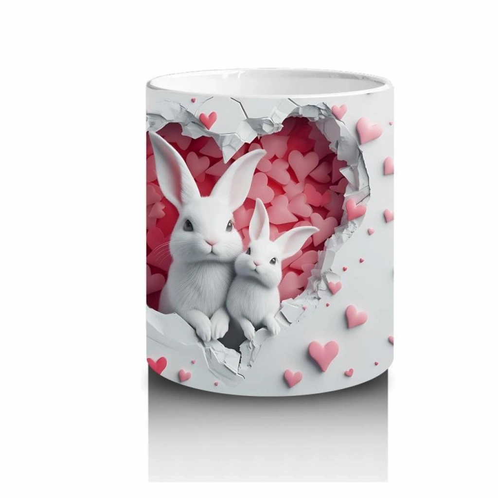 Çocuklara Sütü Sevdiren Kalp Çatlağından Bakan Sevimli Tavşan Kupa Bardak