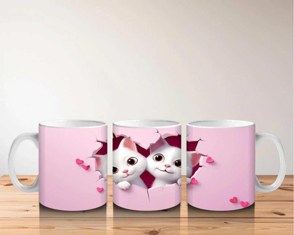 Çocuklara Sütü Sevdiren Kalp Çerçevesinden Bakan İki Sevimli Kedi Kupa Bardak