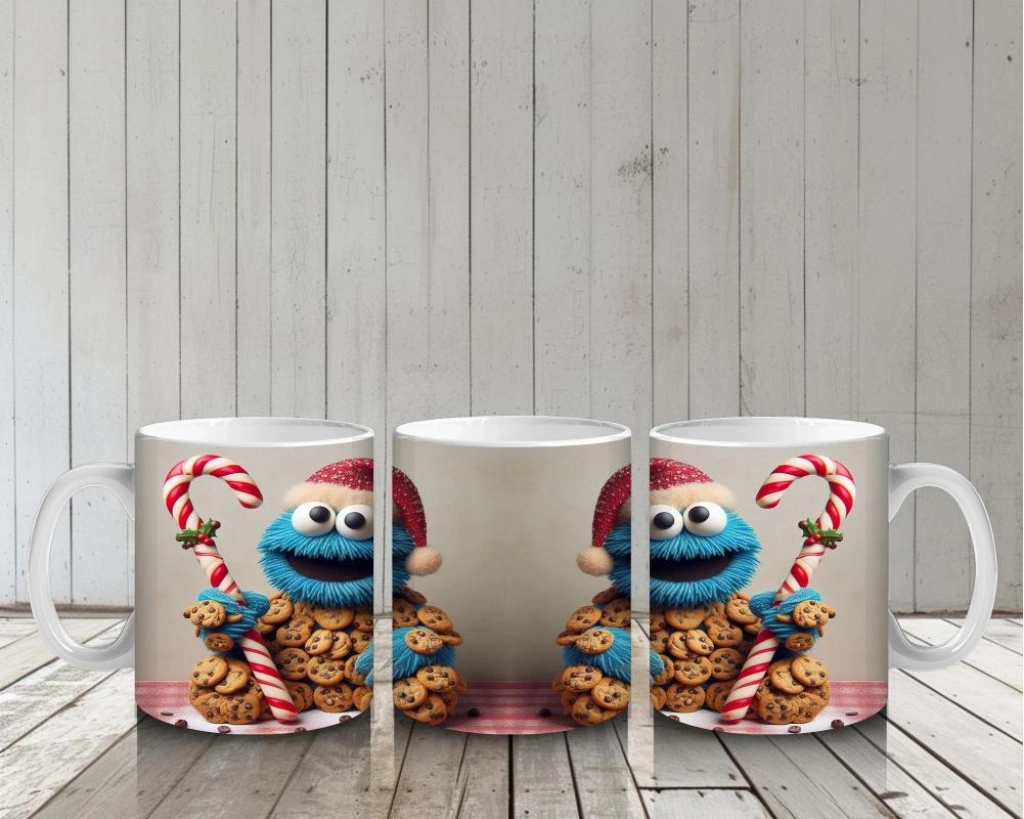 Çocuklara Sütü Sevdiren Kurabiye Canavarı ve Baston Şeker Desenli Kupa Bardak