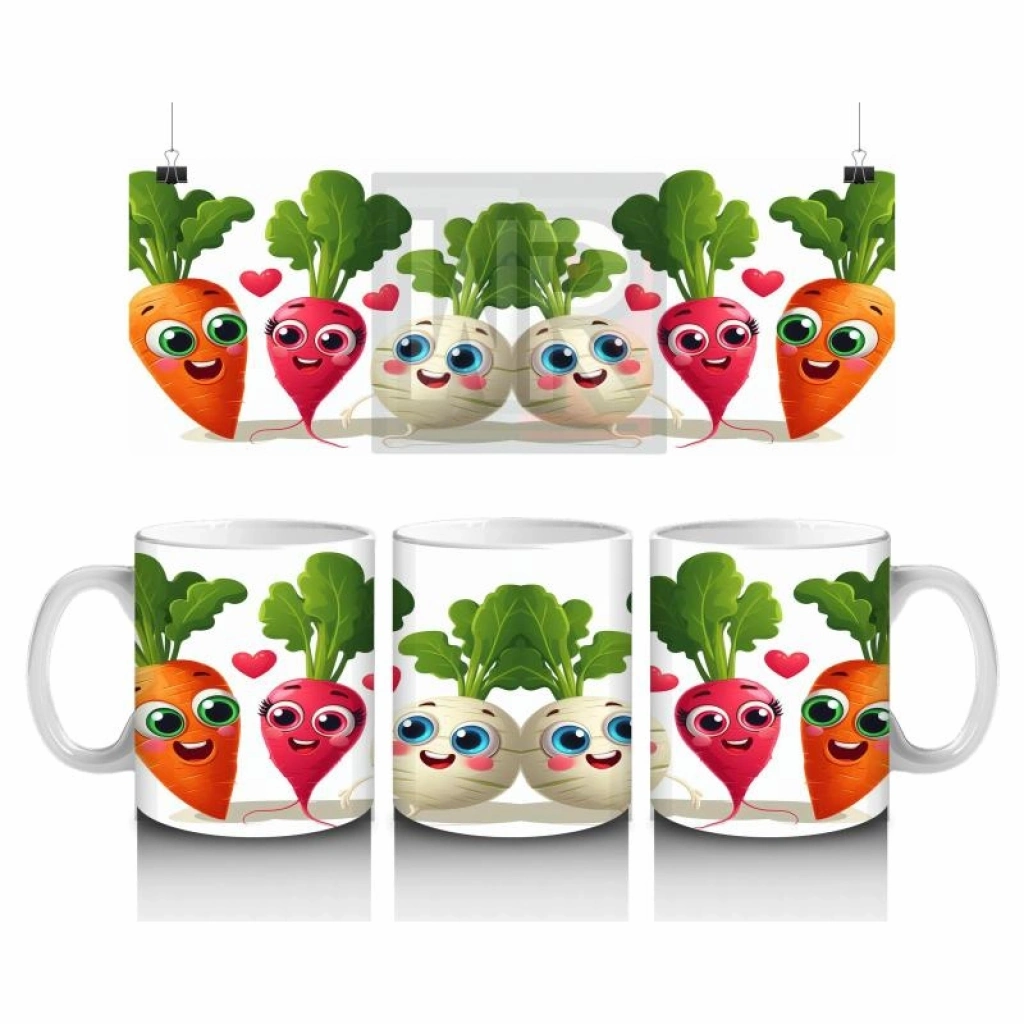 Çocuklara Sütü Sevdiren Neşeli Sebzeler ve Kalpler Desenli Kupa Bardak