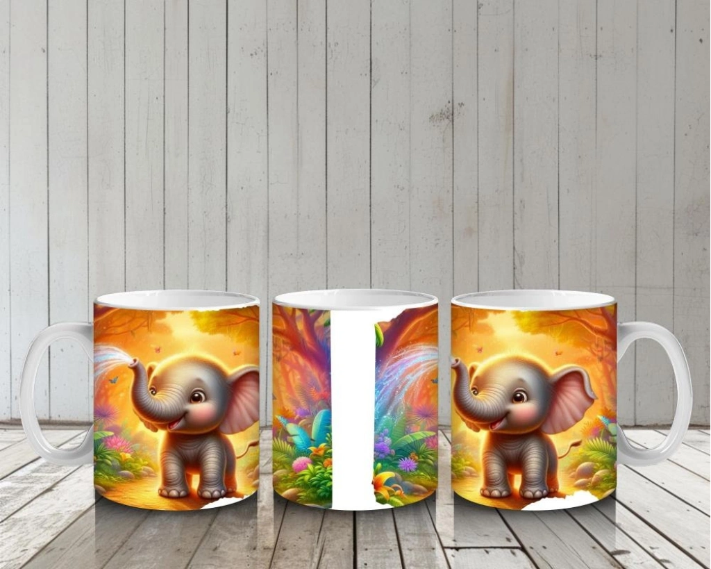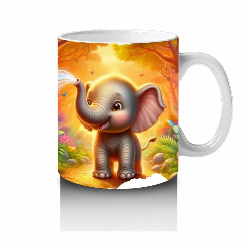 Çocuklara Sütü Sevdiren Orman Ortasında Su Fışkırtan Sevimli Fil Desenli Kupa Bardak