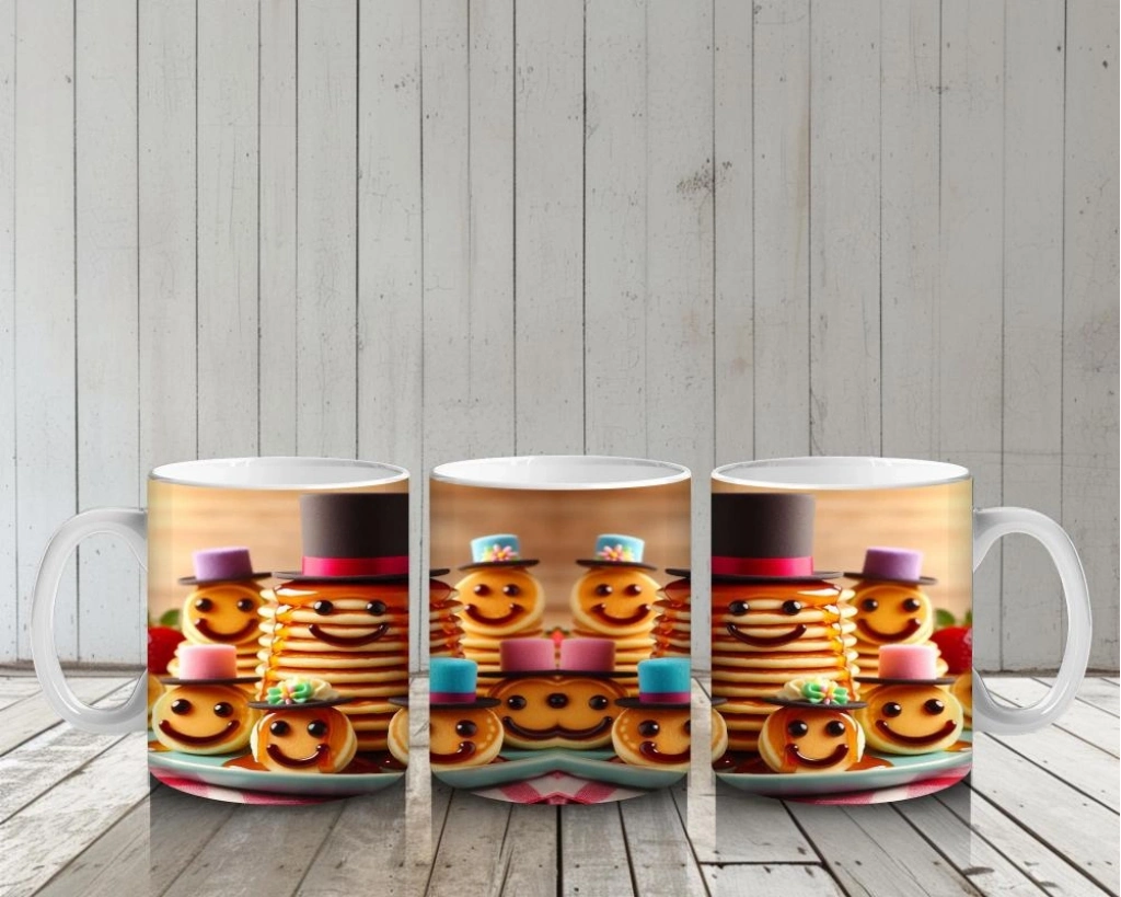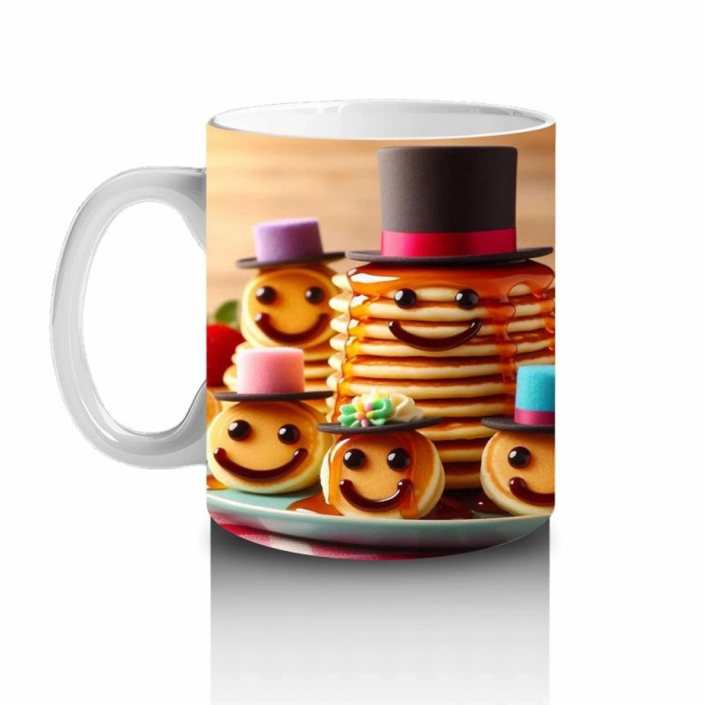Tatlı pankeklerin dans ettiği neşeli bir karnaval! Bu eğlenceli tasarım, süt molalarını çocuklar için lezzetli ve renkli bir kutlamaya dönüştürüyor.