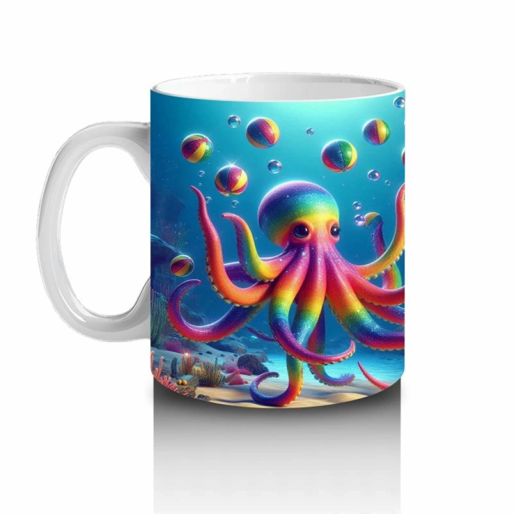 Çocuklara Sütü Sevdiren Renkli Ahtapot ve Baloncuklar Desenli Kupa Bardak