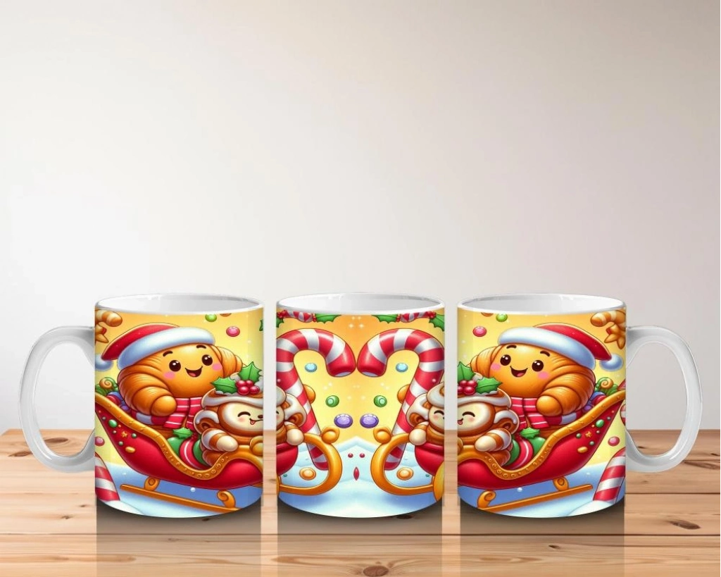 Şekerden yapılmış kızağıyla tatlı bir yolculuğa çıkan minik karakterler… Bu eğlenceli kupa, süt saatini rengârenk bir maceraya çeviriyor.