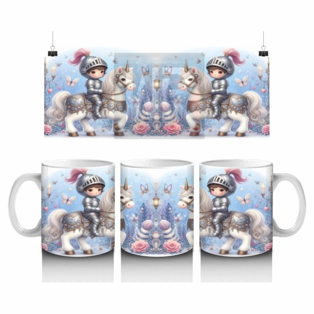 Çocuklara Sütü Sevdiren Unicorn Üzerinde Zırhlı Şövalye Desenli Kupa Bardak
