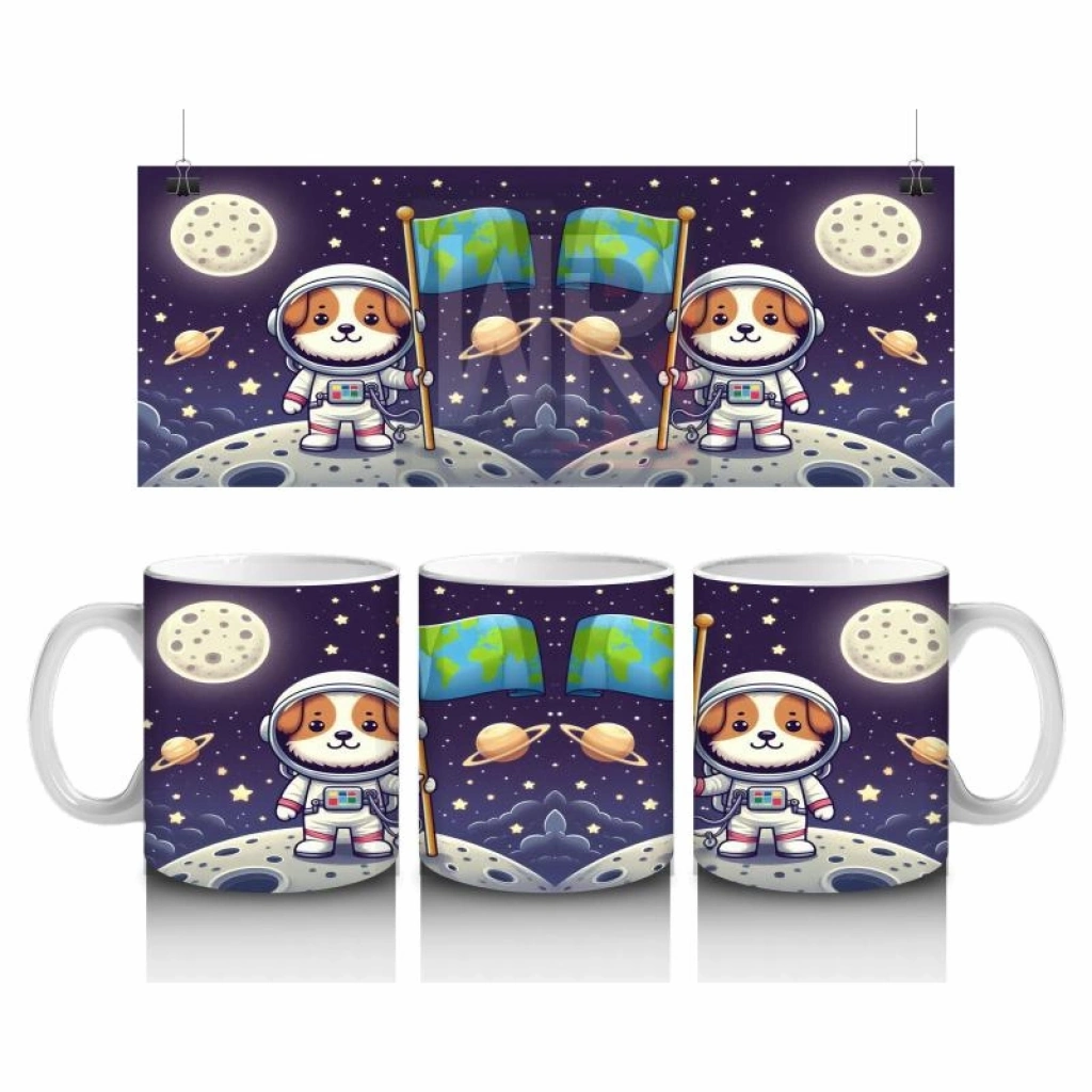 Çocuklara Sütü Sevdiren Uzay Kaşifi Sevimli Köpek Desenli Kupa Bardak