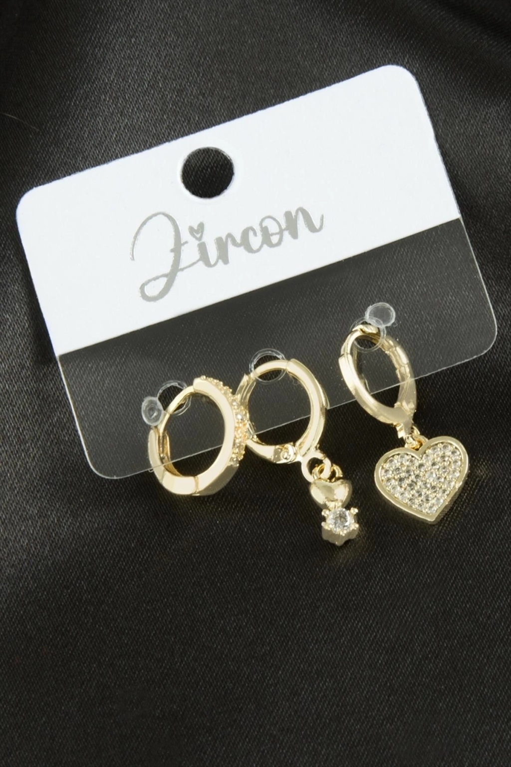 ÇOK SATAN 3 Adet Kalp Zirkon Taşlı Küpe