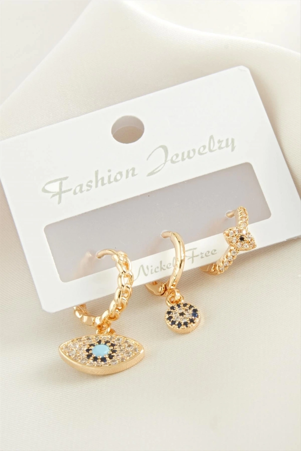 ÇOK SATAN 3 Adet Oval Nazar Zirkon Taşlı Küpe