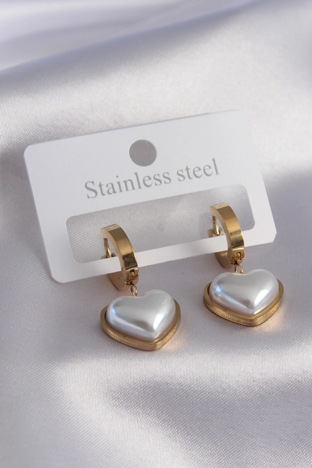 316L Çelik Gold Renk Kalp Model Kadın Küpe