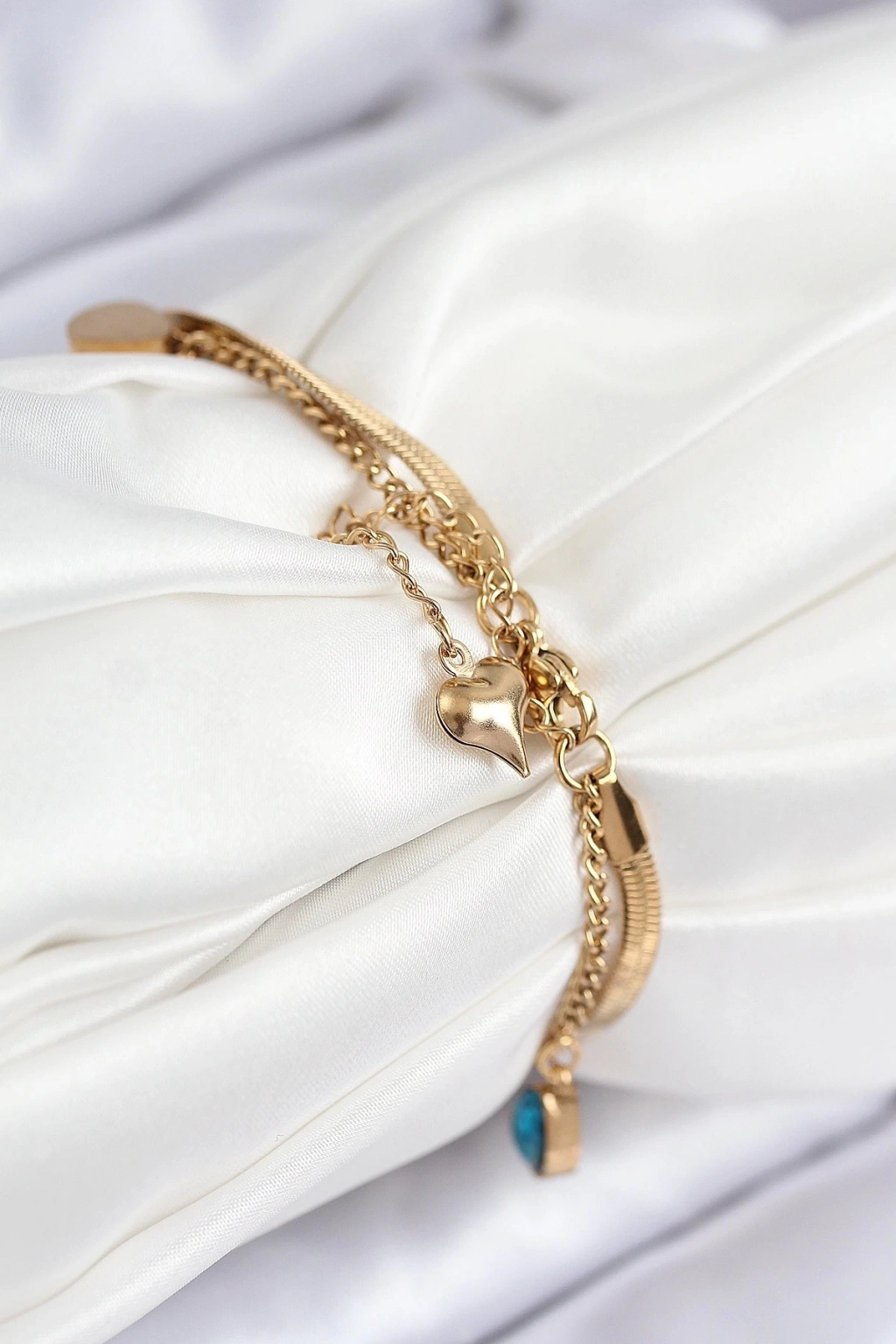 ÇOK SATAN Pirinç Gold Renk Kalp Model Kadın Bileklik