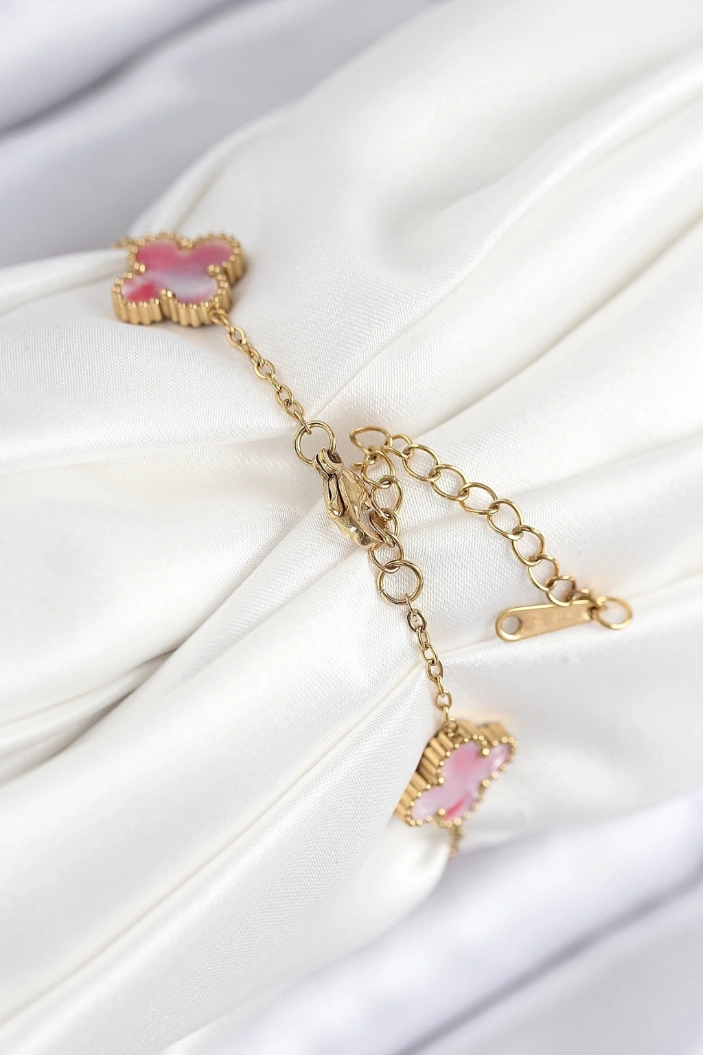 316L Çelik Sedefli Pembe Gold Renk Yonca Kadın Bileklik