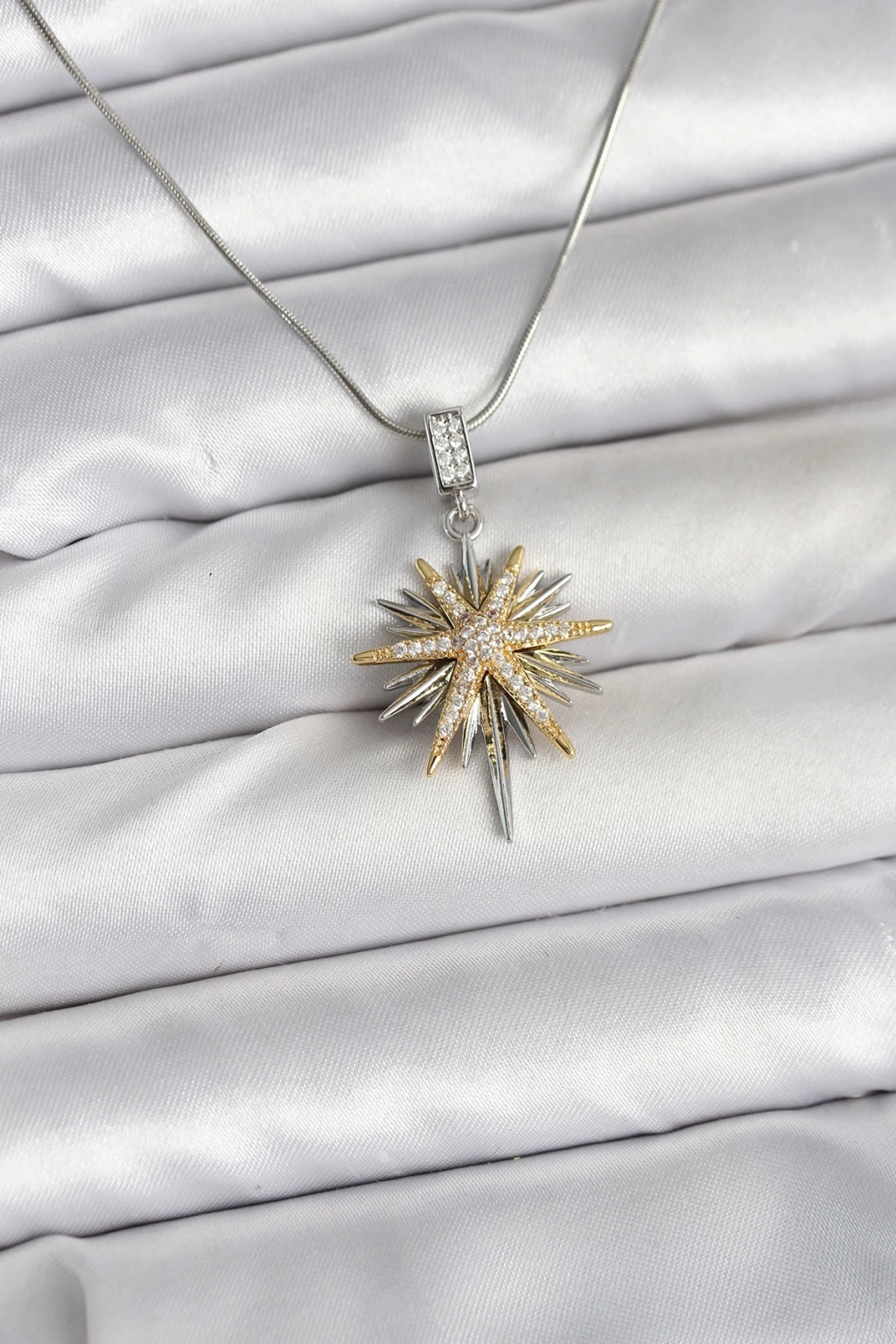 316L Çelik Zincir Gümüş Renk Kutup Yıldızı Model Kadın Kolye