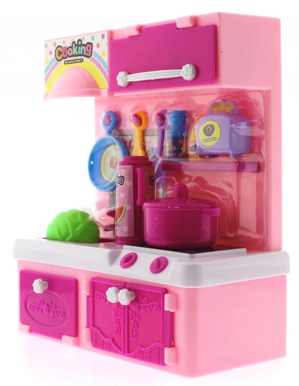 Set içrisinde mutfak tezgahı ve dolaplar, lavabo, ocak, pişirme aparatları, sebzeler, bazı küçük ev aletleri bulunmaktadır.