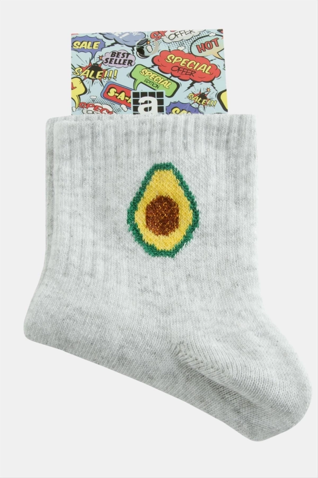 Çorap; Ürün malzemesi polyester ve üzeri desenlidir. Boyu 28 cm ve genişliği 8 cmdir. Ürün numarası 37-41 arasındadır.