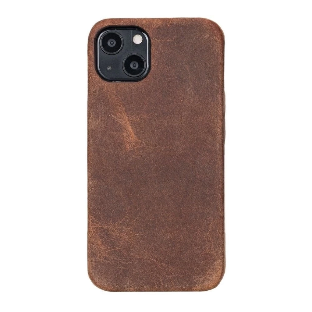 ÇOK SATAN Apple iPhone 13 Mini Uyumlu Deri Arka Kapak ROCK G2 Kahverengi