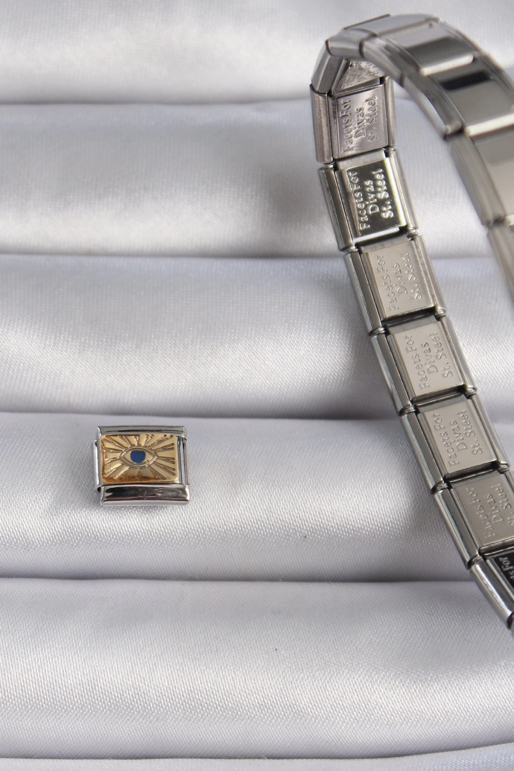 ÇOK SATAN BFS 316L Çelik Gümüş Renk Altın Göz İşlemeli Nomination Charm