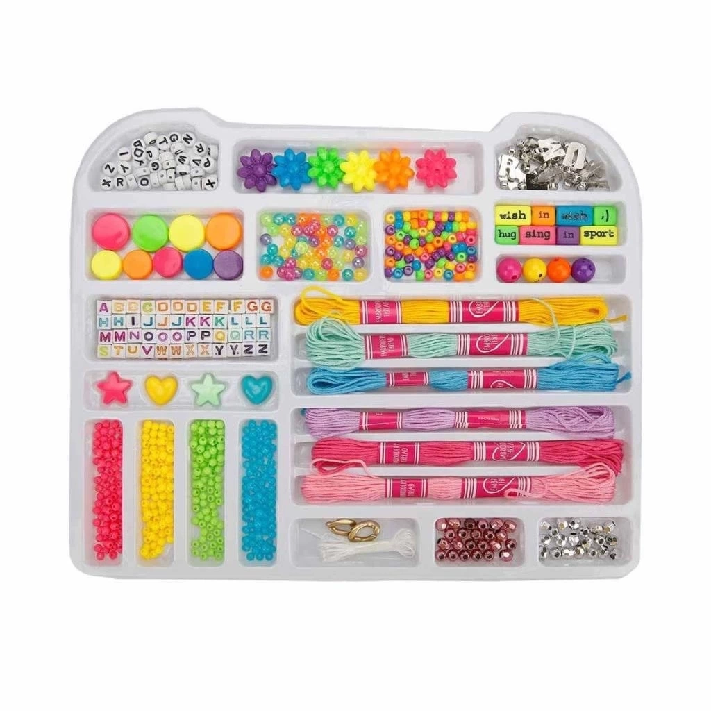 3 farklı şekildeki harf boncukları, tatlı mesajlar içeren boncuklar, rengarenk ipler ve daha birçok aksesuar ile hayallerinizdeki takıları yapabilirsiniz!
