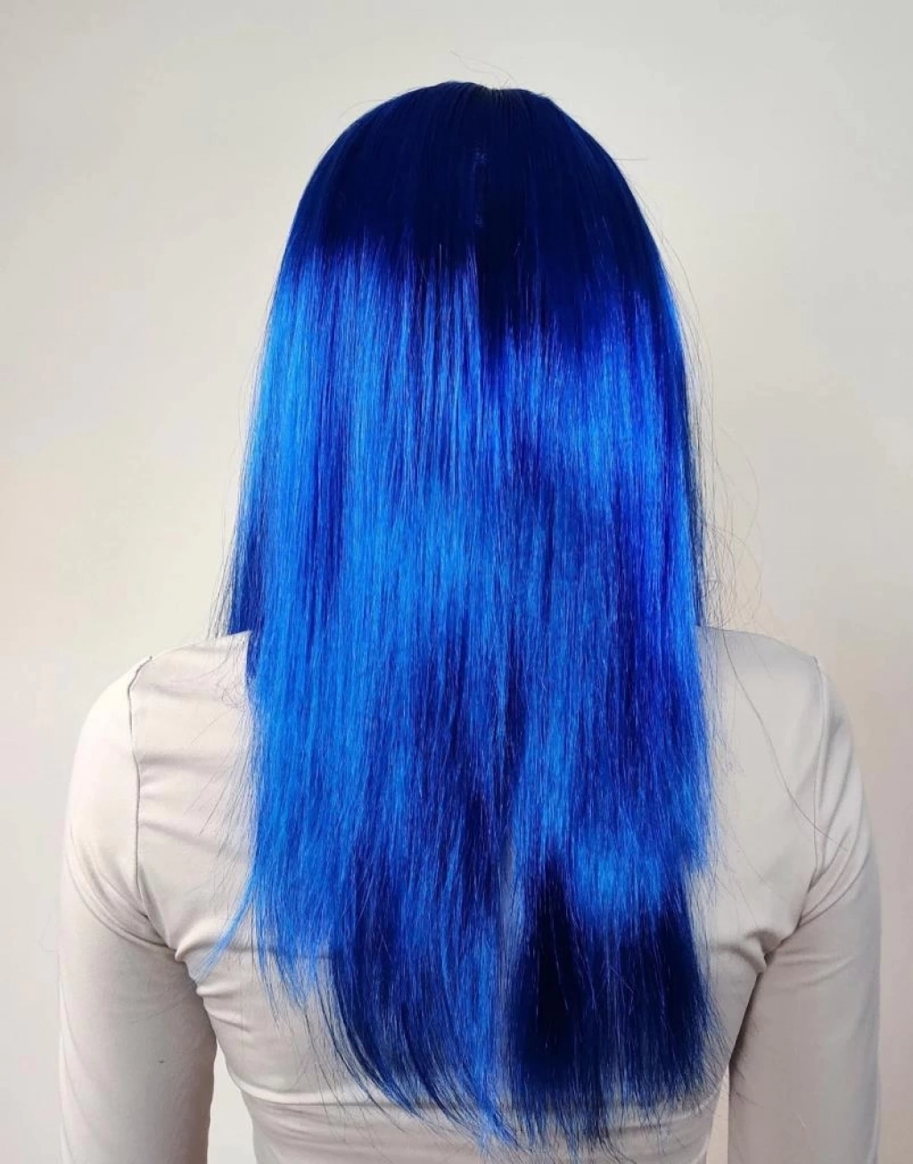 Mavi Renk Uzun Parti Peruğu – Cesur ve Çekici Bir Tarz!